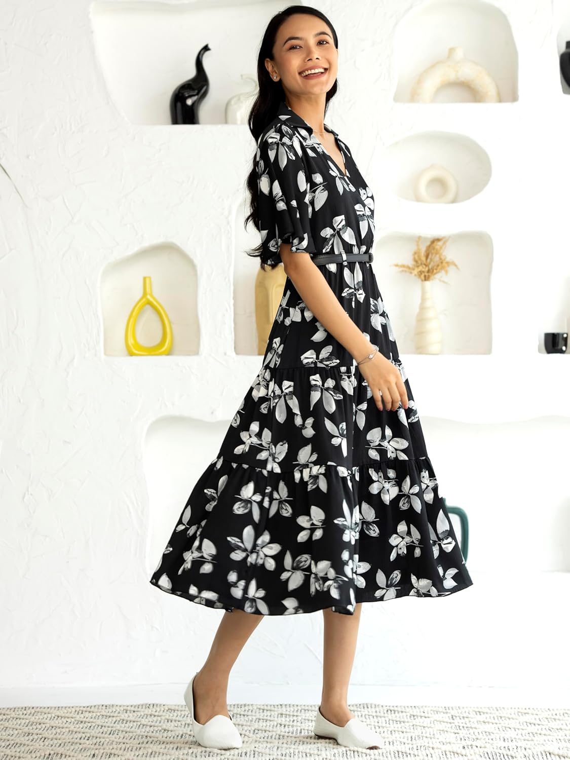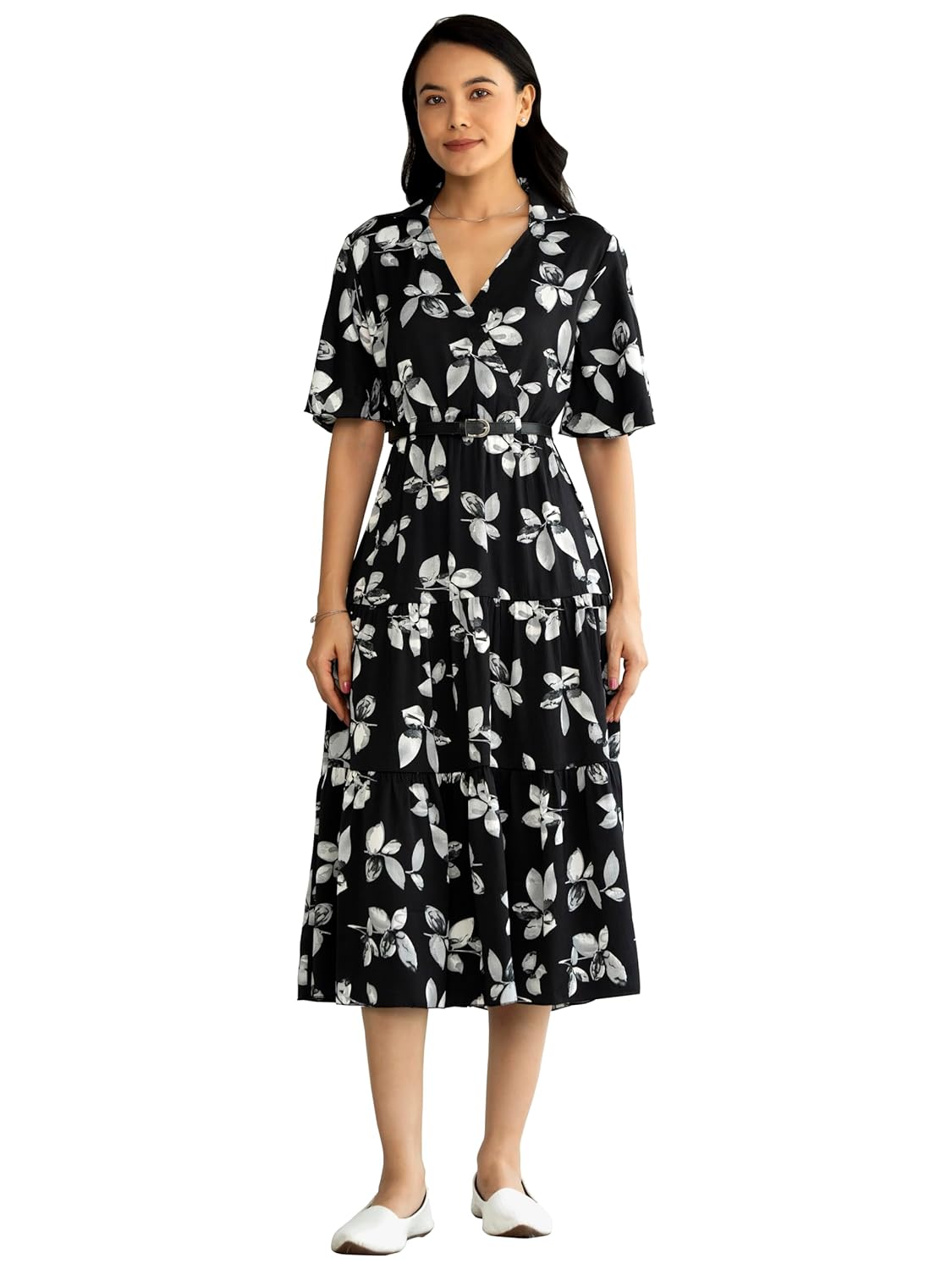 AASK Women Peplum Gathared Stylish Dress with Belt by VintaVool