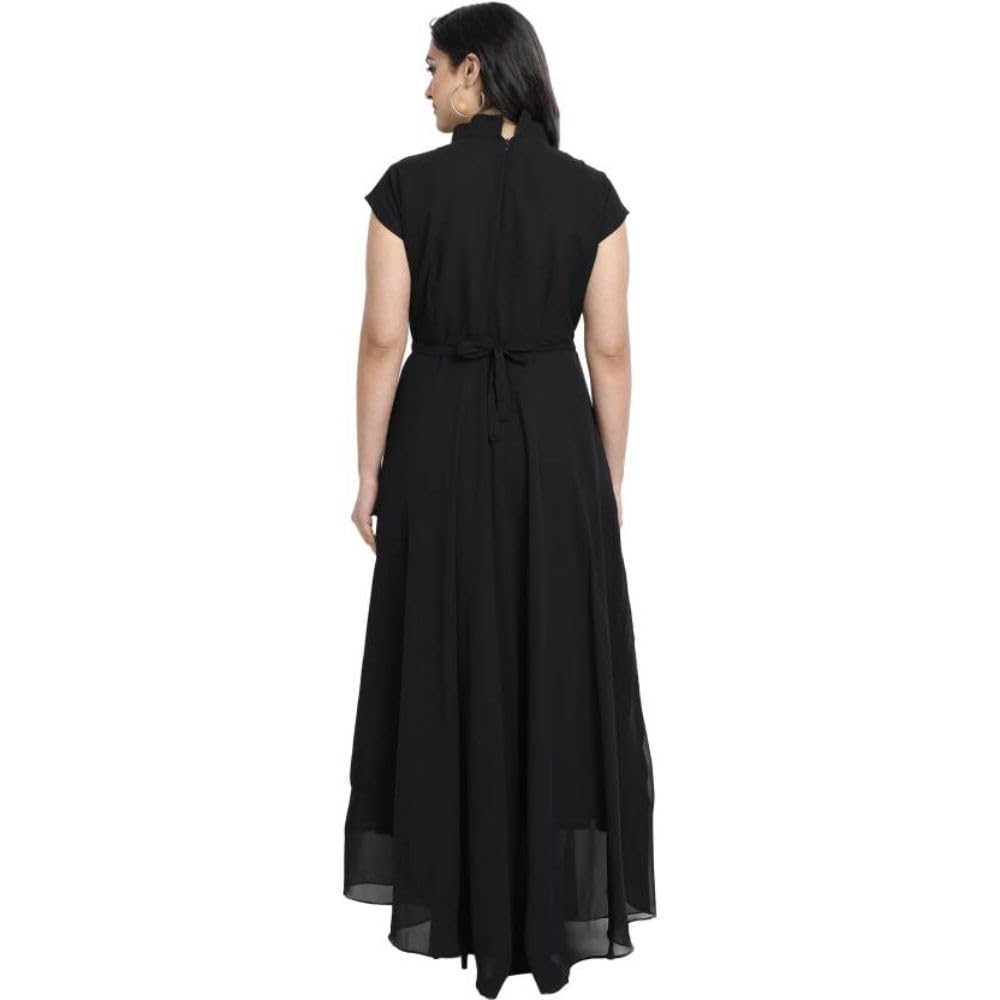 B-FASHION Shreeji Boutique Black Color Flared Short Sleeves Georgette Flared Fancy Back Dress for Women by VintaVool