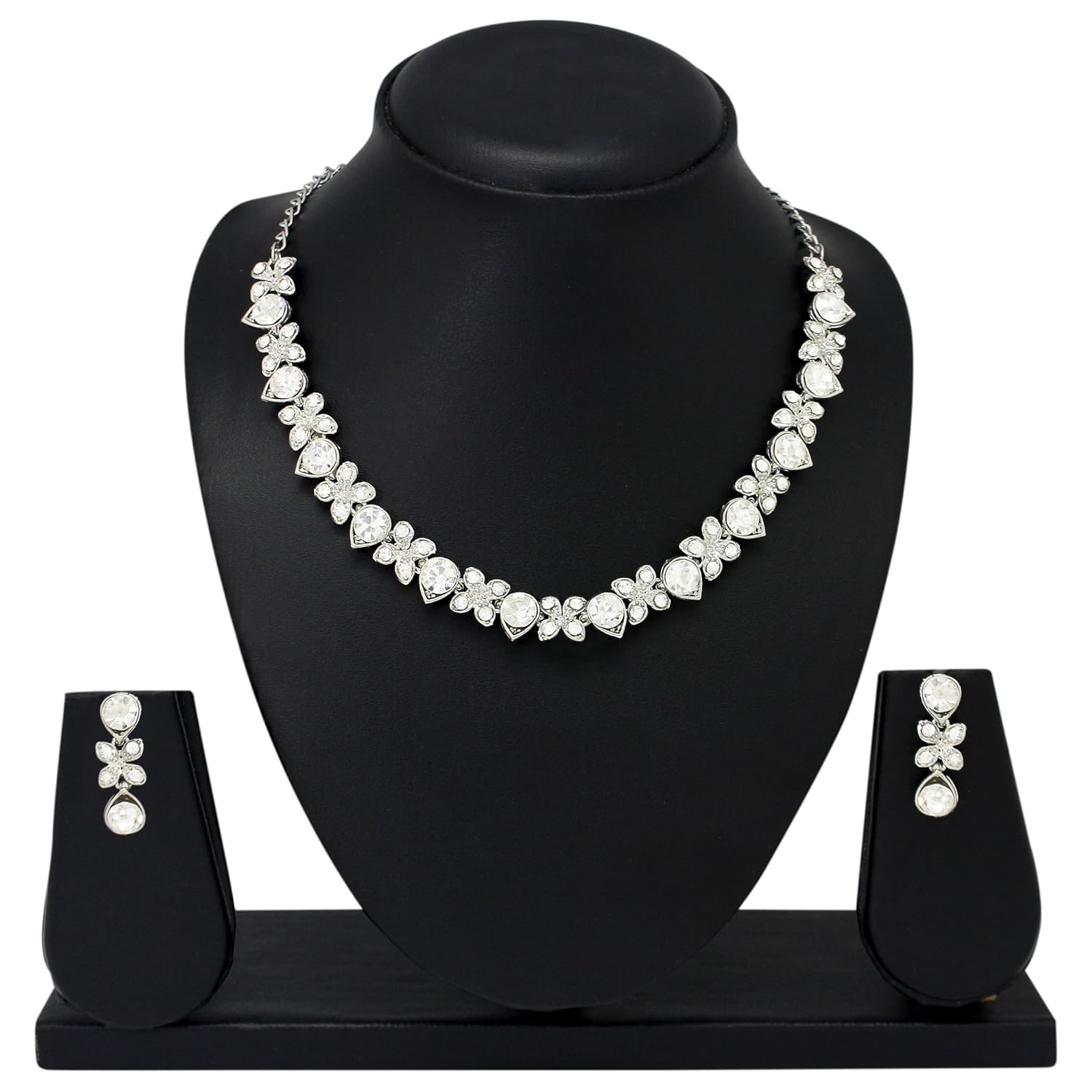 Atasi International Princess Style AD Crystals/Stones Necklace with Earrings Jewellery Set for Women/Girls – Wedding Jewelry/Party & Festival Accessories by VintaVool
