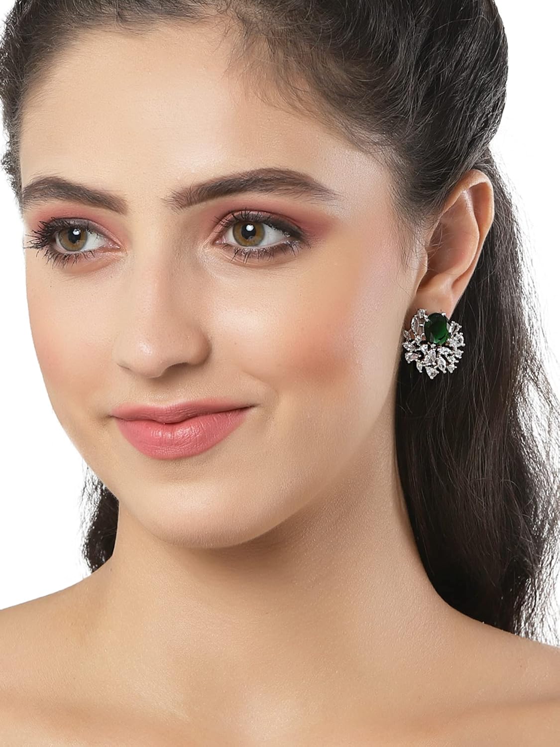 Karatcart Women Green American Diamond Stud Earrings by VintaVool