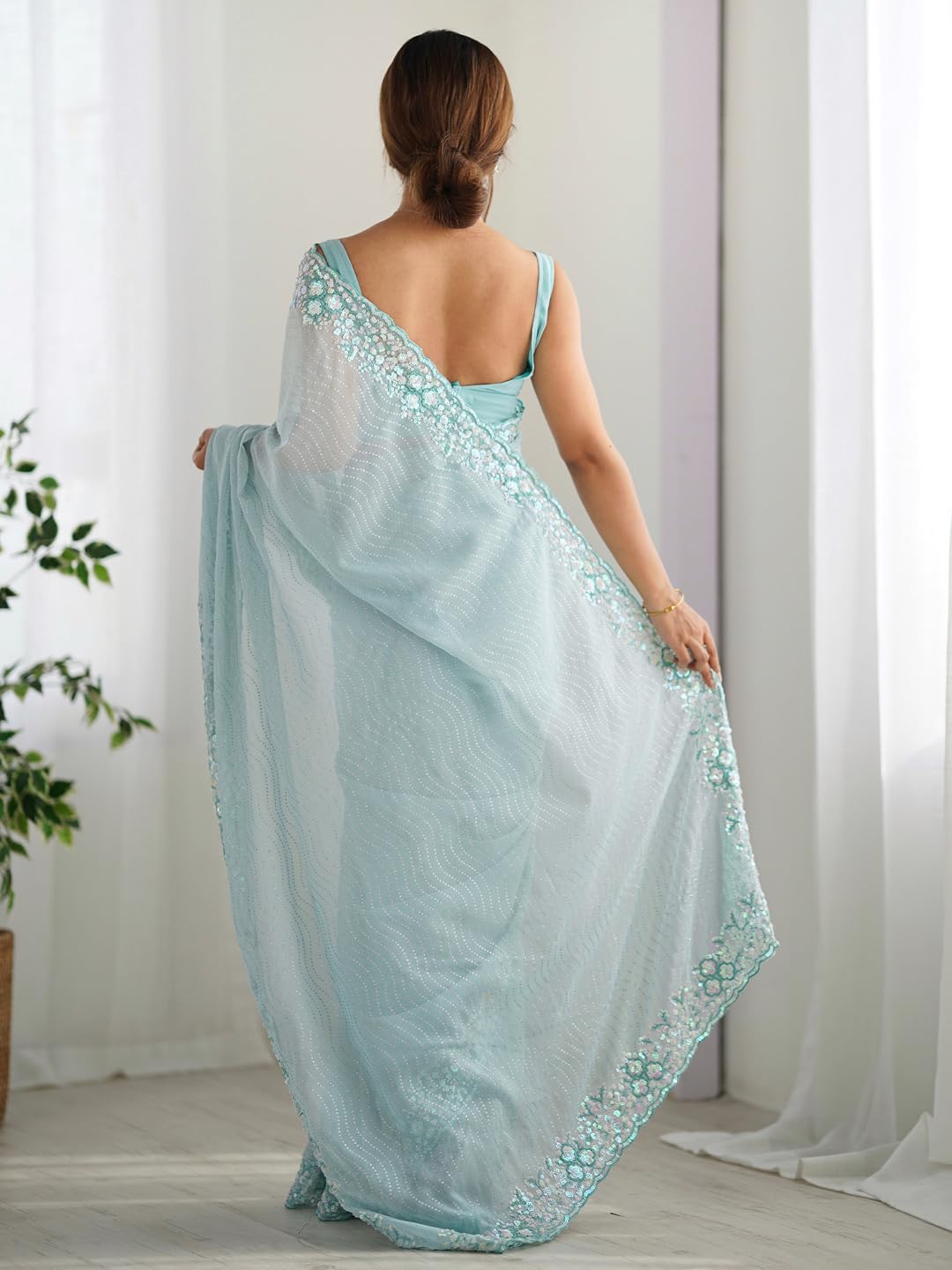AKHILAM Women’s Georgette Embellished Saree With Unstitched Blouse Piece by VintaVool