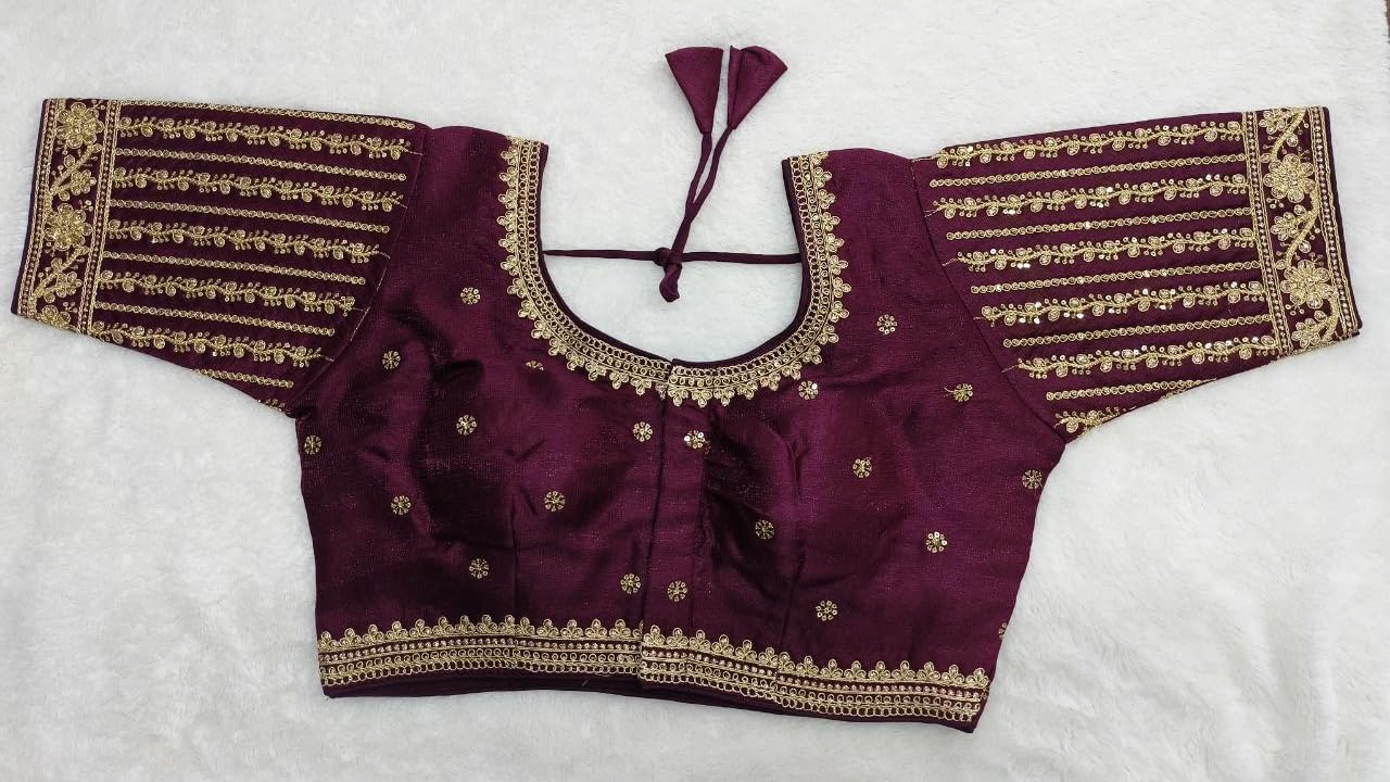 Pujia Mills Women’s Readymade Bridal Blouse Embroidery Copper Coding Glitter Sequence Thread Work Indian Ethnic Designer Stitched Half Sleeve Blouse Readymade for Women Saree Bridal Lehenga Choli by VintaVool