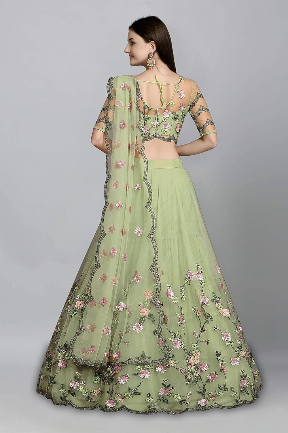 ZAALIMA FASHION WITH Z LOGO Indian Women’s Net Embroidered Semi-Stitched Lehenga Choli And Dupatta Set (Free Size) by VintaVool