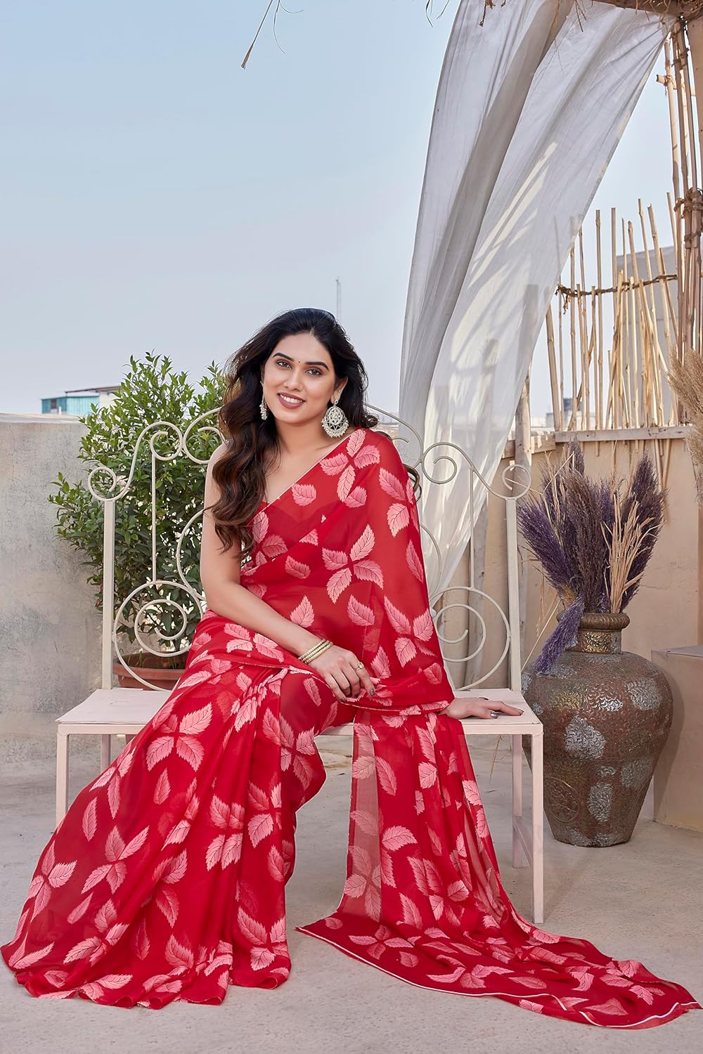 MIRCHI FASHION Women’s Chiffon Printed Saree with Blouse Piece by VintaVool