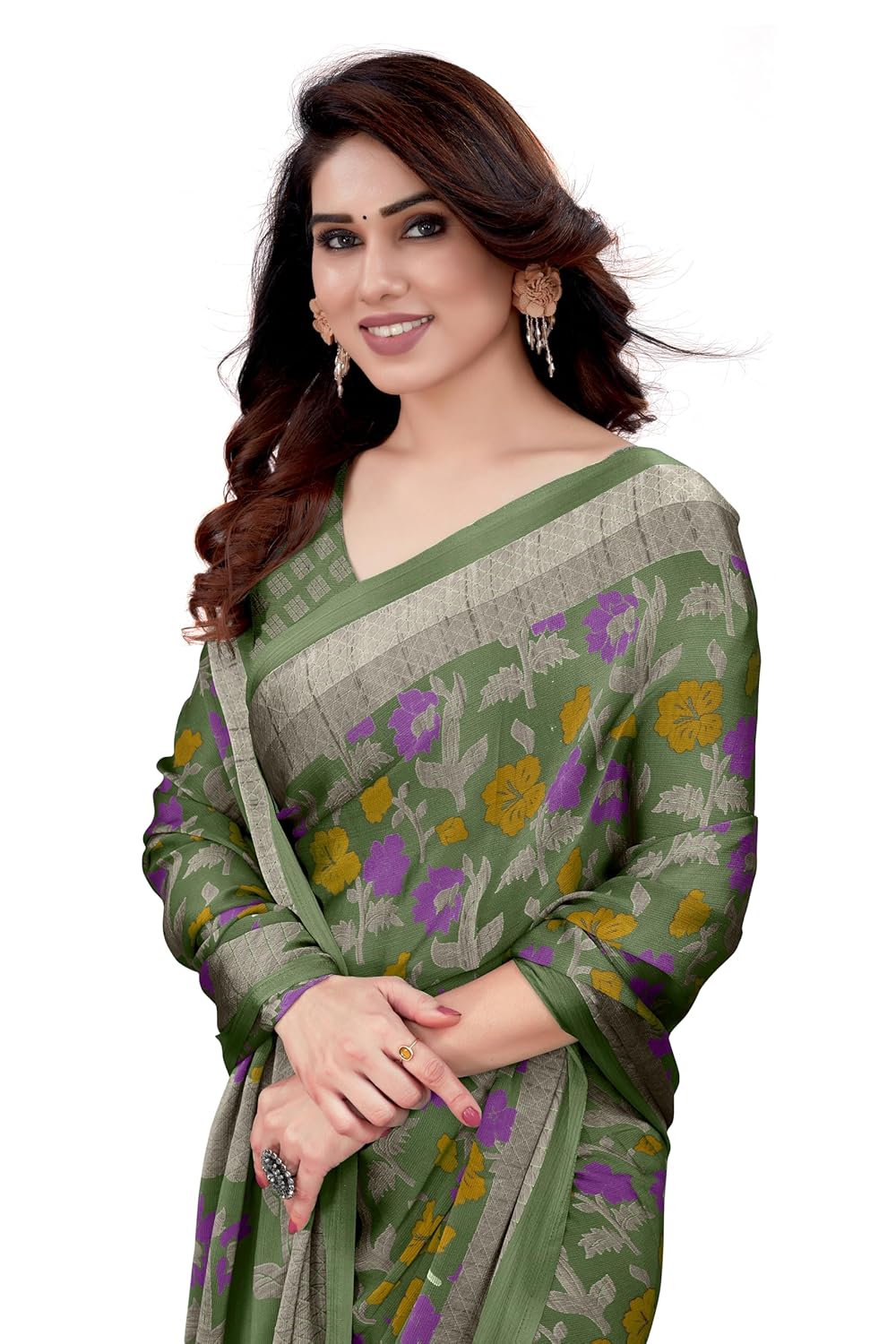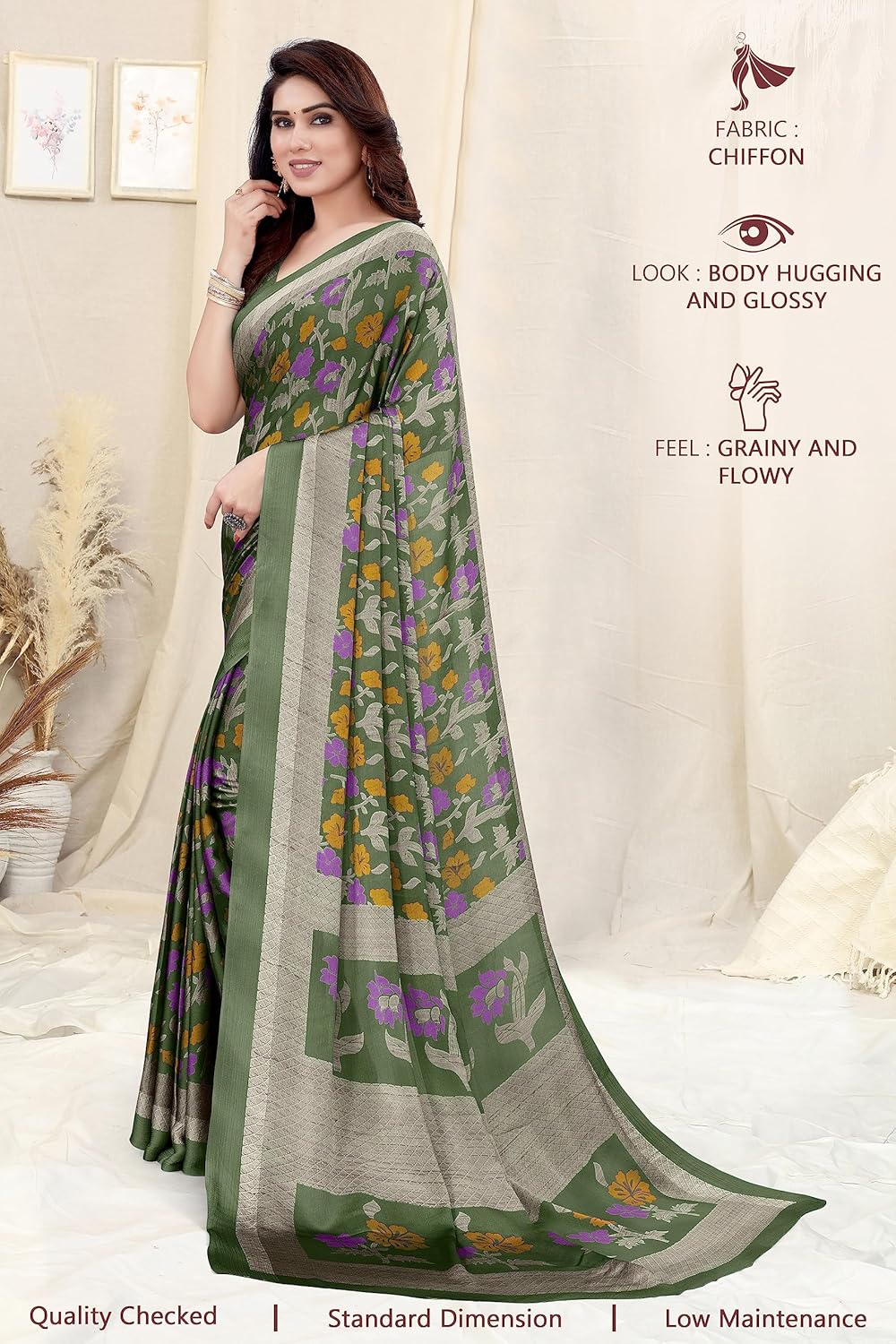 MIRCHI FASHION Women’s Chiffon Floral Border-Palav Printed Saree with Blouse Piece by VintaVool