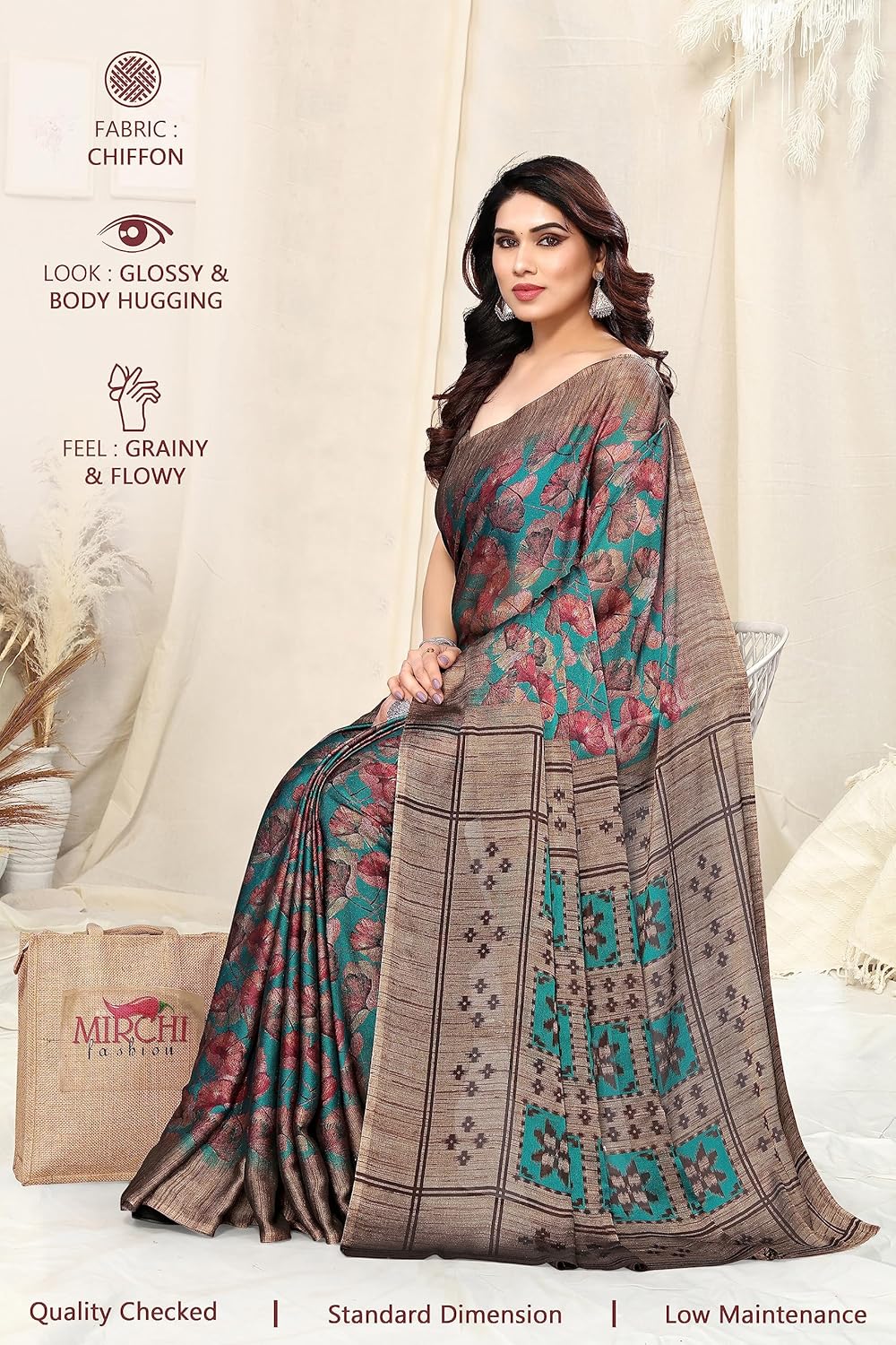 MIRCHI FASHION Women’s Fancy Chiffon Floral Printed Saree with Blouse Piece by VintaVool