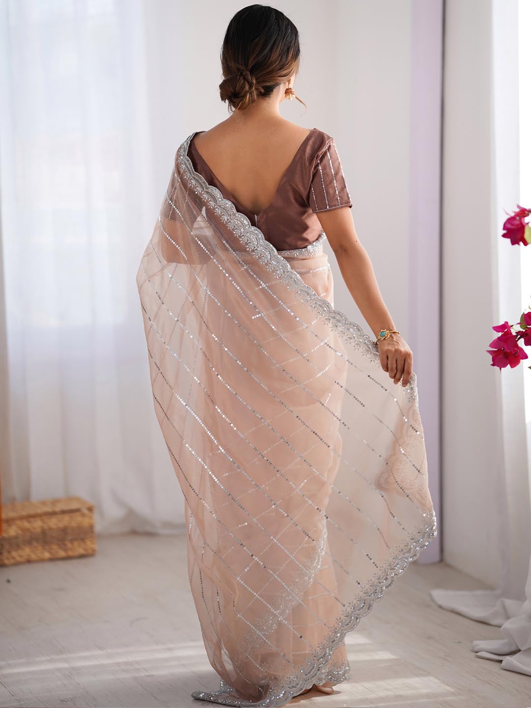 AKHILAM Women’s Organza Solid Saree With Unstitched Blouse Piece (RADHA1101_RX_Parent) by VintaVool