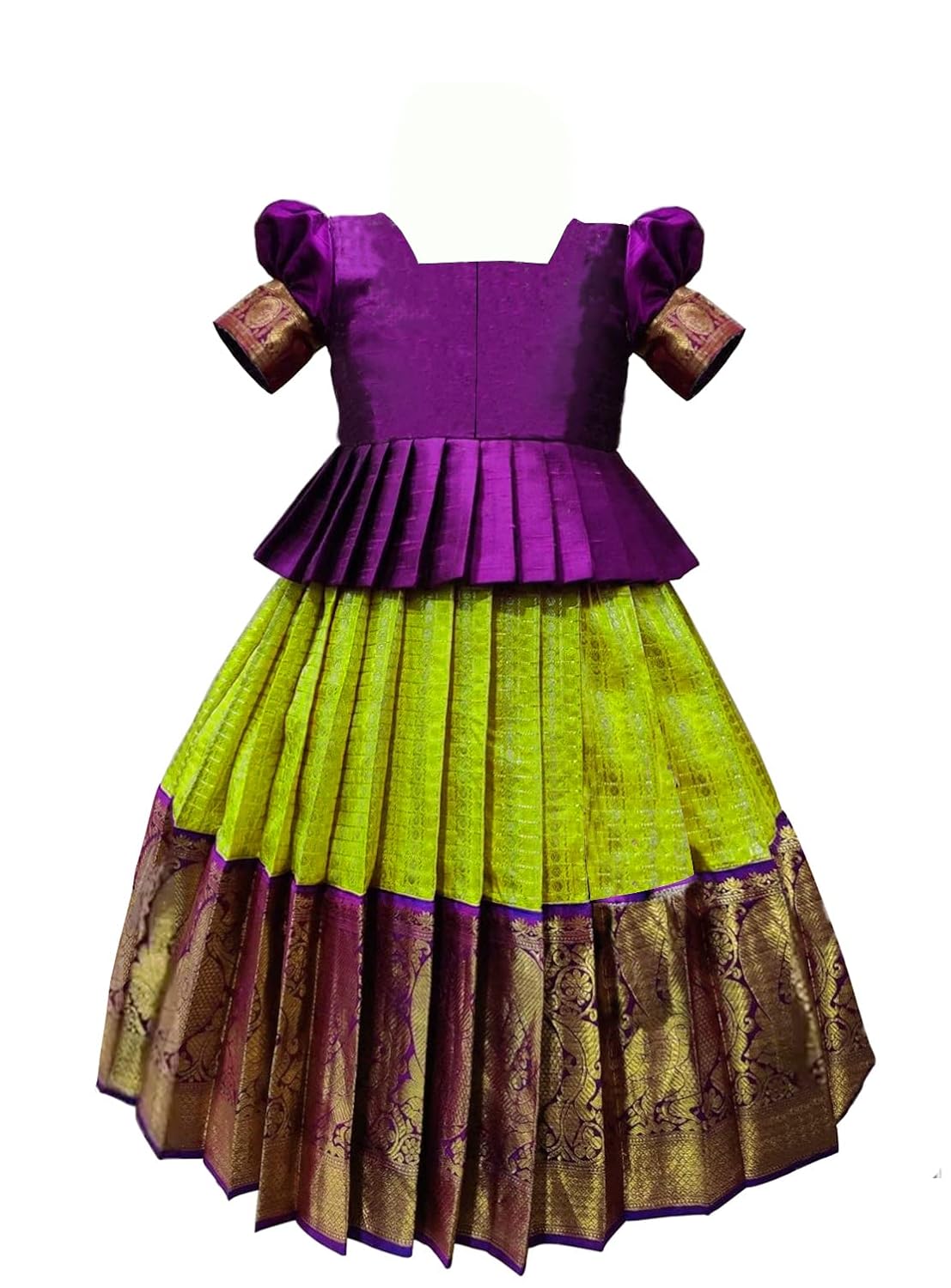 Miss Ethnik Women and Girls Faux Georgette Readymade Lehenga Choli (FL-1010-Green_Green _Free Size) by VintaVool
