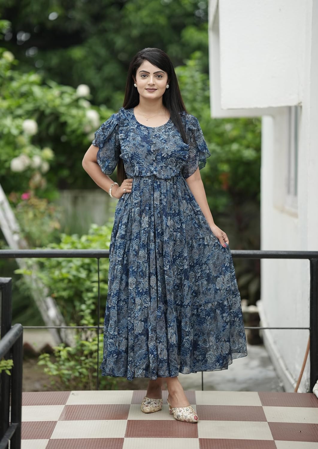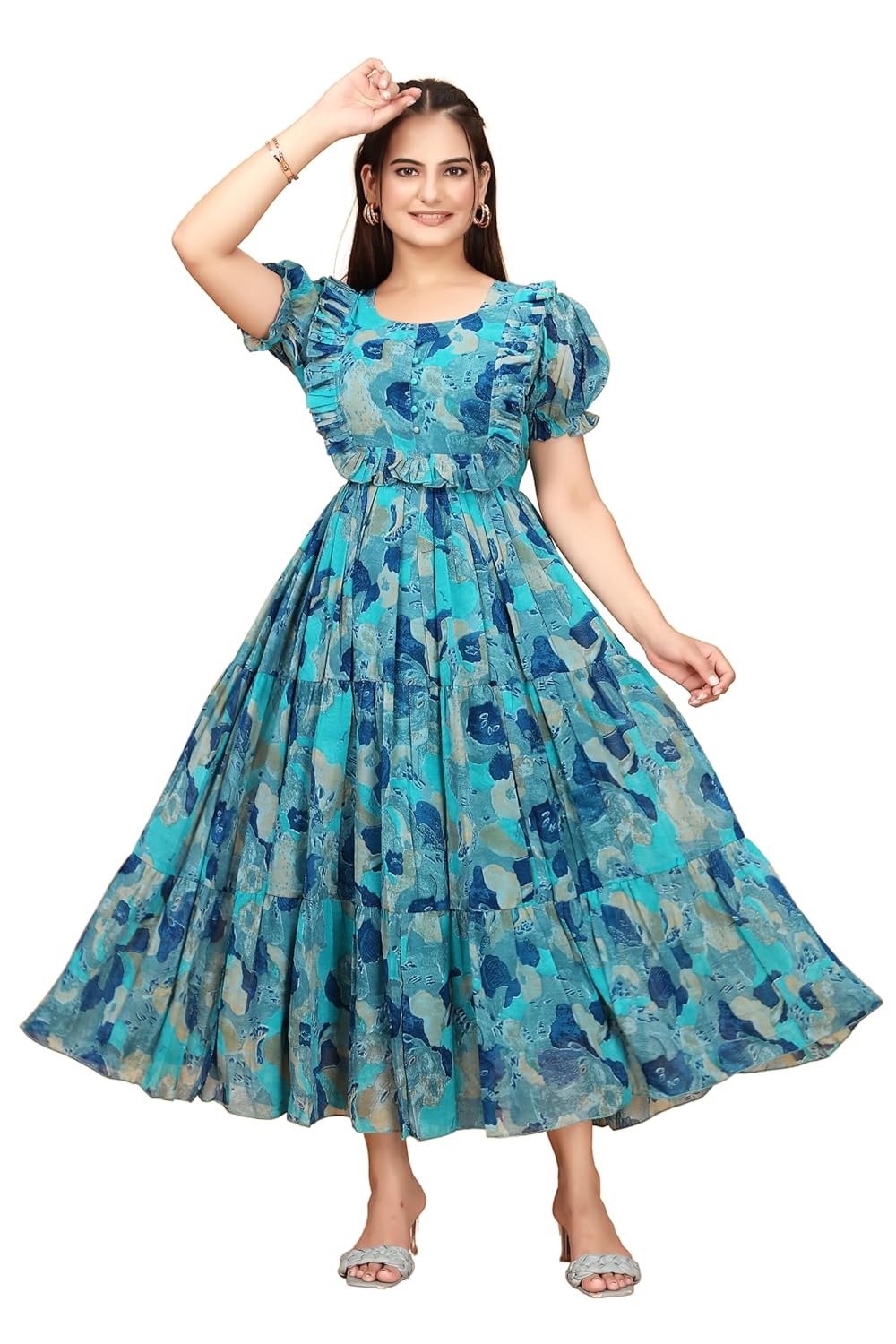 eightone Women’s Georgette Maxi Dress Digital Floral Printed One Piece Western Long Gown Dresses for Women by VintaVool