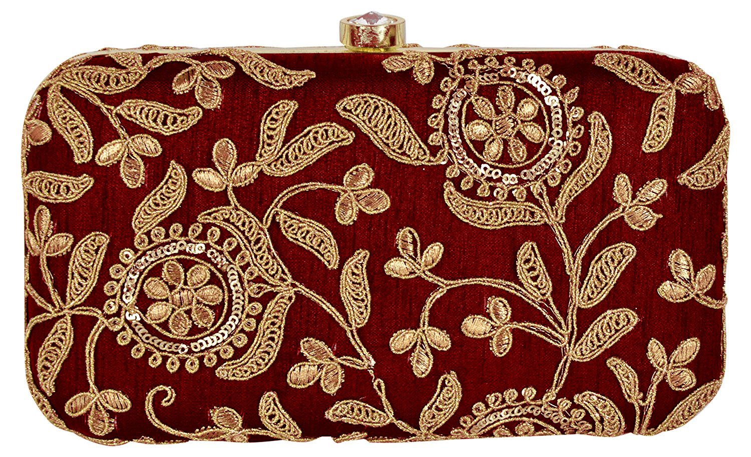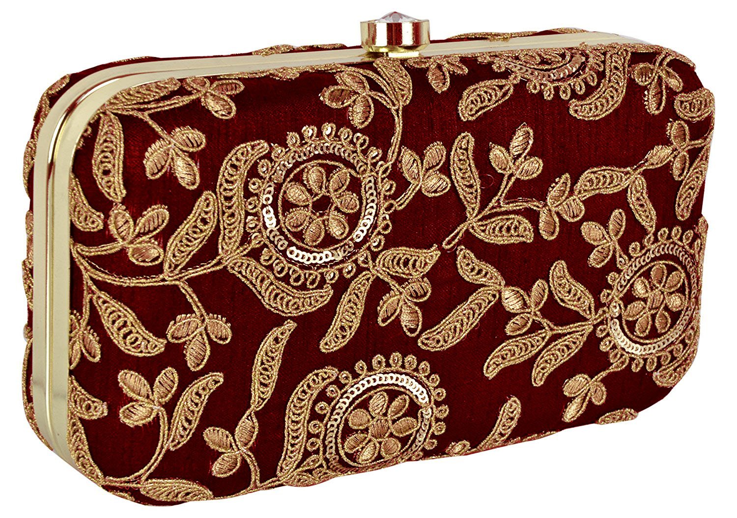 TOOBA Handicraft Hand Embroidered Box Clutch Bag Purse for Bridal, Casual, Wedding Bag for Women & Girls by VintaVool