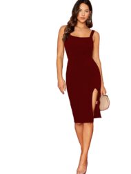 Trendy dress for women’sBodycon DressMini Dress for WomenParty/Outing Dress for WomenLadies Dresses Stylish & Slim Fit Square Neck, Thing Slit Solid Mini Bodycon Dress Relaxed and Comfortable to Wear Sexy and fashionable to create a charming look
