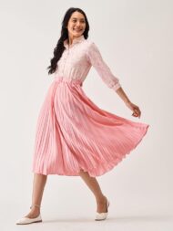 This dress is nice for this price. looking at the picture I expected it to have openable buttons however they are just mock. fit and length wise its true to size. Only issue I faced with this is the elastic on the waist line… it always goes up and pushes the shirt part up. you need to pull the skirt part down all the time to make it look neat. overall its good… may be if I remove the elastic, it becomes manageable