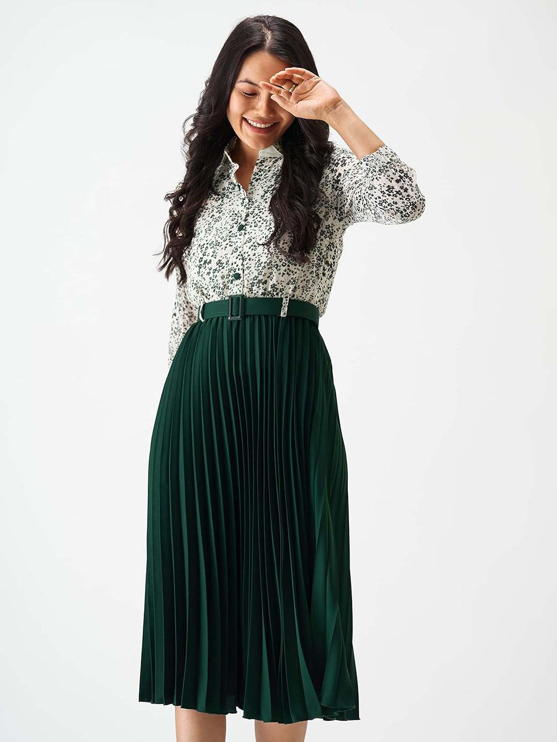 This dress is nice for this price. looking at the picture I expected it to have openable buttons however they are just mock. fit and length wise its true to size. Only issue I faced with this is the elastic on the waist line… it always goes up and pushes the shirt part up. you need to pull the skirt part down all the time to make it look neat. overall its good… may be if I remove the elastic, it becomes manageable
