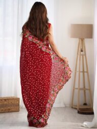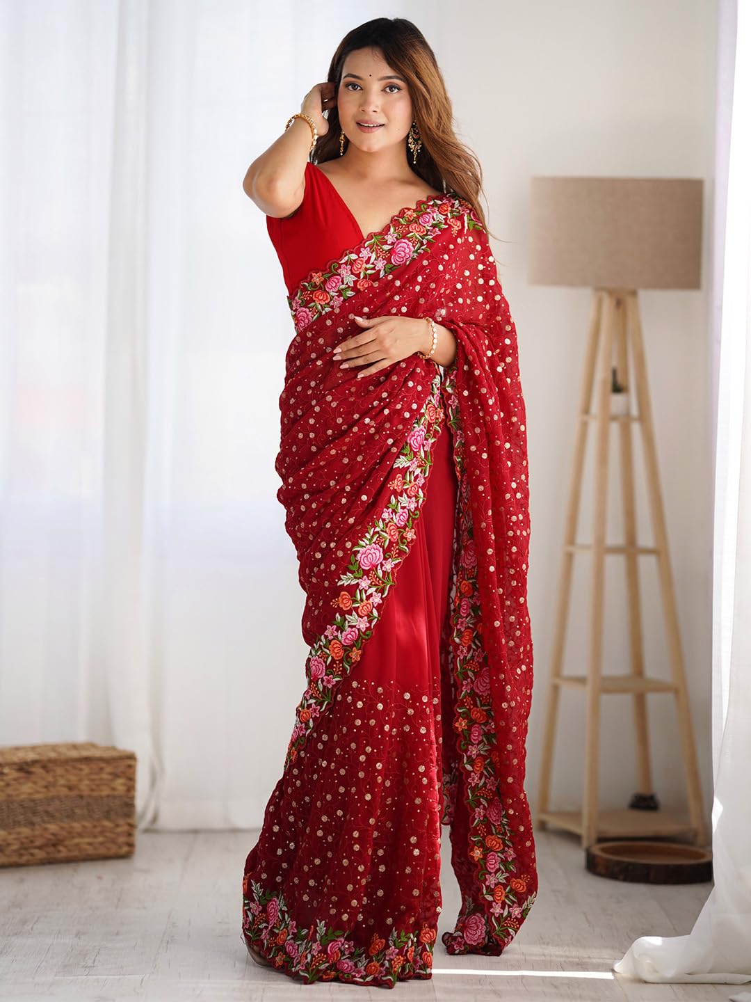 AKHILAM Women’s Multicolor Georgette Embroidered Saree With Unstitched Blouse (KESARI2701_KR12_Parent) by VintaVool