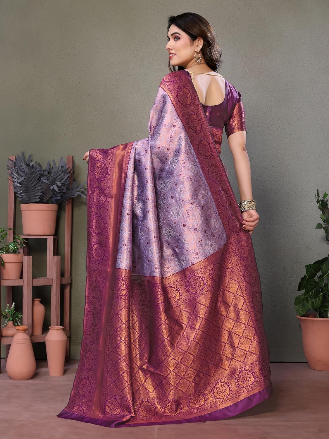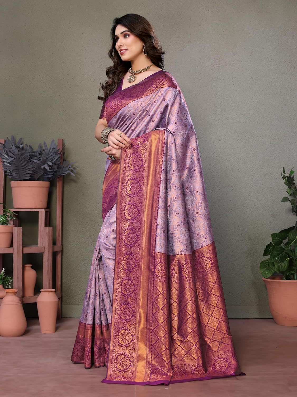 Gorgeous beautiful color Saree Well crafted with high quality Kanjivaram Silk fabric, Heavy Zari Border with Rich Pallu, Comfortable to wear; Artfully woven by our skilled artisans; Now flaunt your sophisticated look at any special function!
