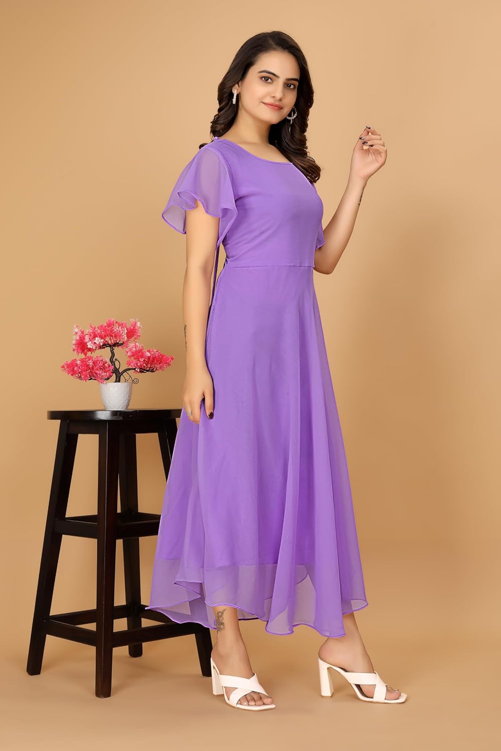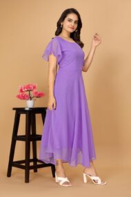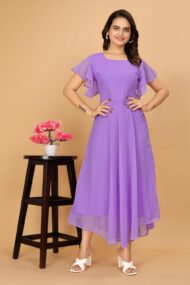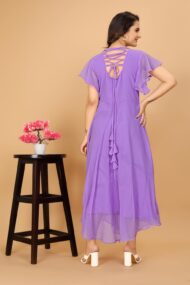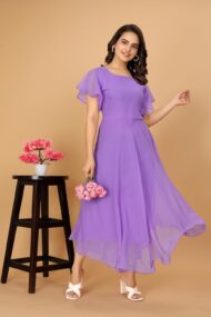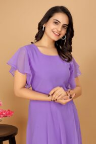 Typically, a “Flared Short Sleeves Georgette Flared Fancy Back Dress for Women” would be a women’s dress composed of georgette fabric, which is renowned for being airy and flowing. The dress has an elaborate back pattern and short sleeves that flare. Below is a summary of the essential components: Georgette Fabric: Often used to make dresses and other clothing, georgette is a lightweight, semi-sheer fabric. It drapes well and has a texture that is slightly crinkled. The dress features short sleeves that are made in a bell or flared form, which can give the ensemble a chic and feminine vibe. Fancy Back Design: The phrase “fancy back” usually refers to a dress that features an elaborate or ornamental design on the back, which may consist of cutouts, lace, embroidery, or other embellishments. This gives the outfit a unique and striking aspect. Depending on its particular style and elements, this kind of dress would probably be appropriate for a range of settings, from semi-formal parties to casual get-togethers. Remember that fashion trends and styles are subject to change, so this type of dress may not always be readily available or as fashionable as it once was. If you’re interested in buying one, you can look for it online or at stores that sell dresses for women.