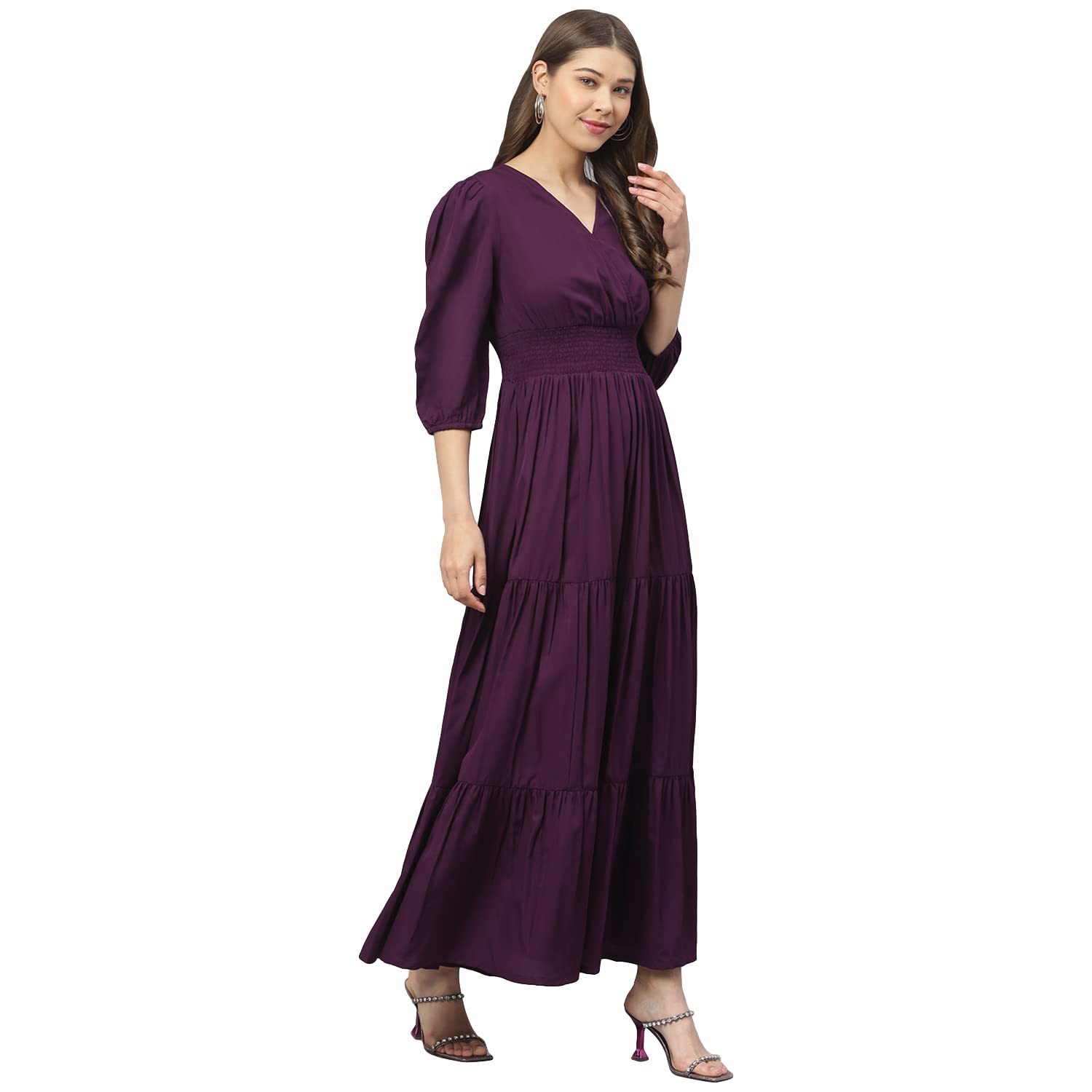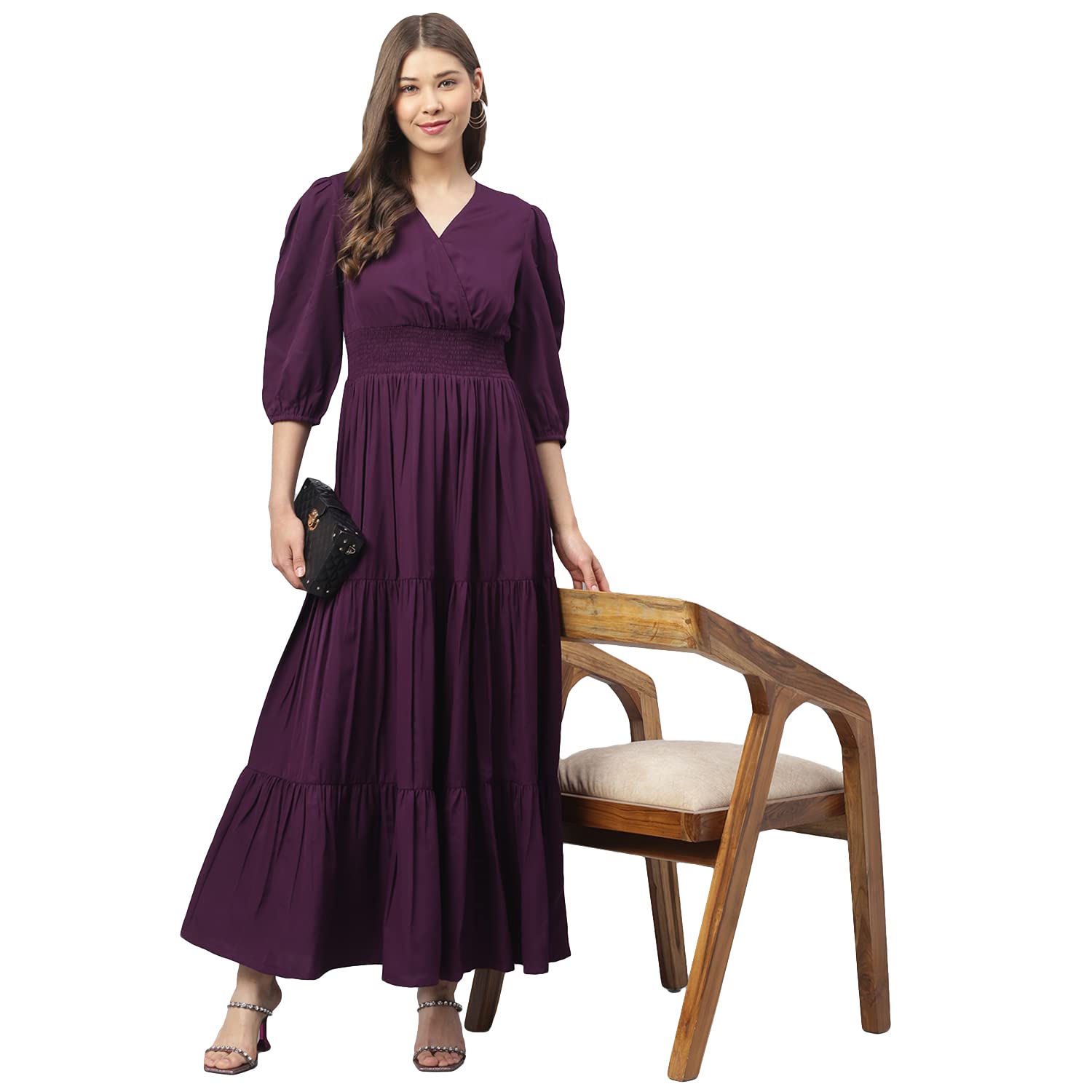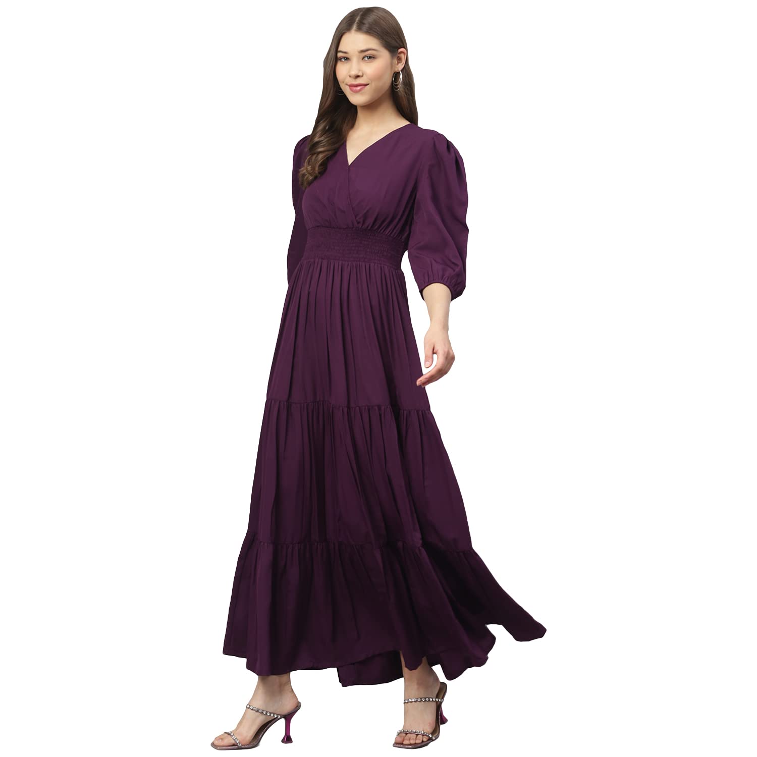 DEEBACO Women’s Fit & Flare Maxi Dress|V-Neck|Full Length Long Dresses for Women|A-Line Dress|Stylish for Ladies|Beach Dress for Women by VintaVool