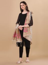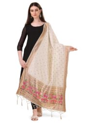 Elevate your ethnic wardrobe with the DEVANGI Women’s Woven Paithani Banarasi Silk Dupatta/Chunni. This exquisite dupatta, featuring a captivating animal print design, seamlessly combines traditional craftsmanship with modern aesthetics. Measuring 1 meter in width and 2.3 meters in length, it offers ample draping options, making it a versatile accessory for various occasions. Crafted from high-quality Banarasi silk, this dupatta boasts a luxurious texture and a radiant sheen, ensuring you stand out in any crowd. The intricate Paithani weaving technique enhances its elegance, while the vibrant animal print adds a contemporary touch, making it a unique piece in your collection. Perfect for women and girls who appreciate the blend of tradition and style, this designer dupatta can effortlessly complement a wide range of outfits, from casual kurtis to elaborate lehengas and sarees. Whether you’re dressing up for a festive celebration, a wedding, or a casual day out, the DEVANGI Paithani Banarasi Silk Dupatta is sure to add a touch of sophistication and grace to your ensemble.