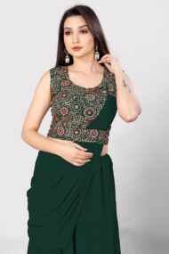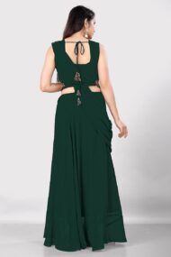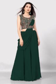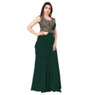 Dhruvin Creation Set for Women combines traditional elegance with modern flair, offering a stunning ensemble that exudes grace and sophistication. This purple chiffon top is lightweight and airy, providing both comfort and style. The top features delicate fabric that flows beautifully, complementing the intricate printed lehenga that brings a touch of vibrancy to the look. The lehenga, designed with intricate patterns and subtle tones, adds a sense of grandeur without being overwhelming. The highlight of the set is the zari sequence embroidered shrug, which gives the outfit a touch of regal refinement with its sparkling threadwork. This shrug beautifully drapes over the top, adding an element of luxury to the overall design. Whether you’re attending a festive occasion, wedding, or a special celebration, this fusion set ensures that you stand out with elegance and charm. The fusion of contemporary and traditional elements allows this set to be versatile, making it suitable for a variety of events.