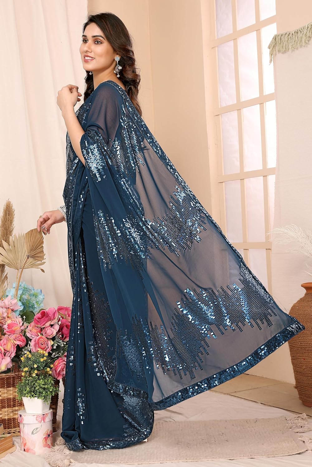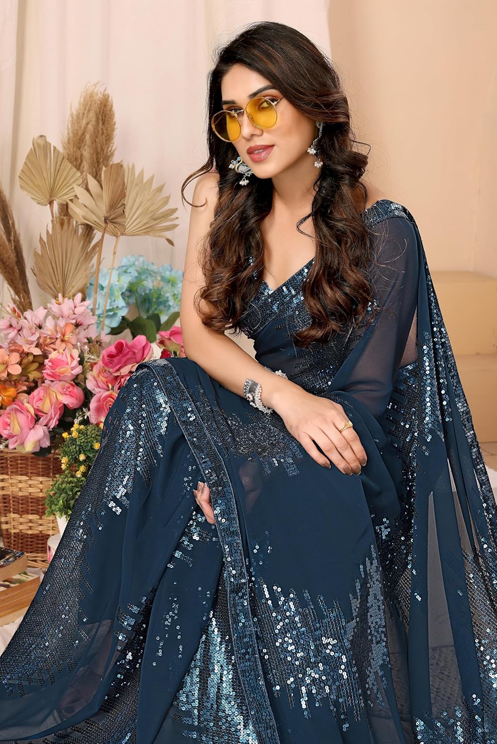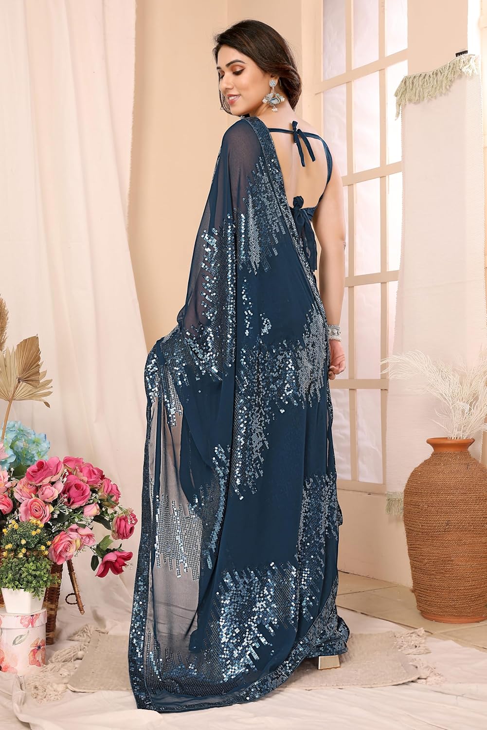 Ekasya Women Georgette with Sequence Ready to Wear Saree – Elegant Blush Design, Intricate Sequence Work, Perfect for Weddings, Parties, and Special Occasions, Stylish & Comfortable Fit by VintaVool
