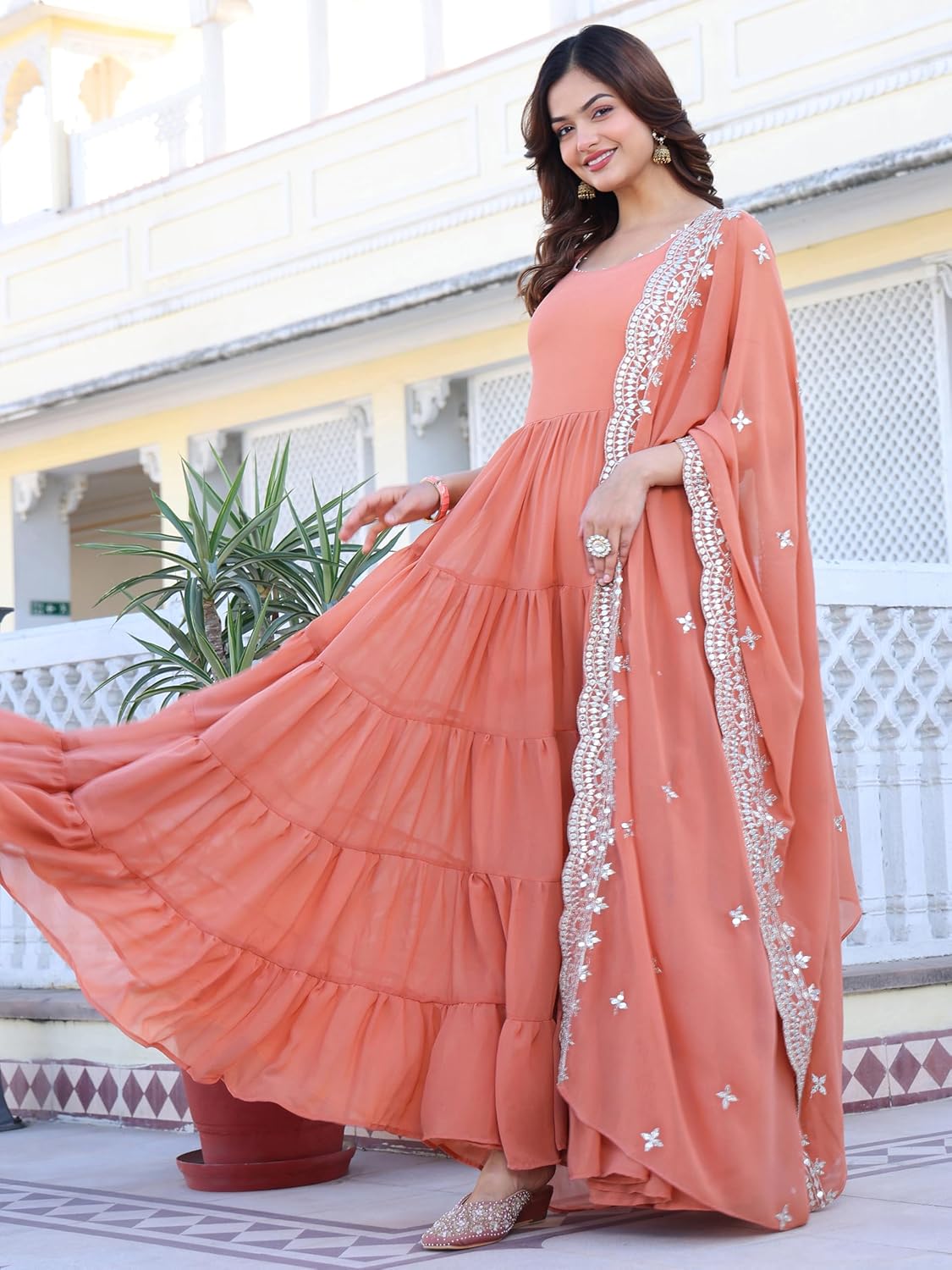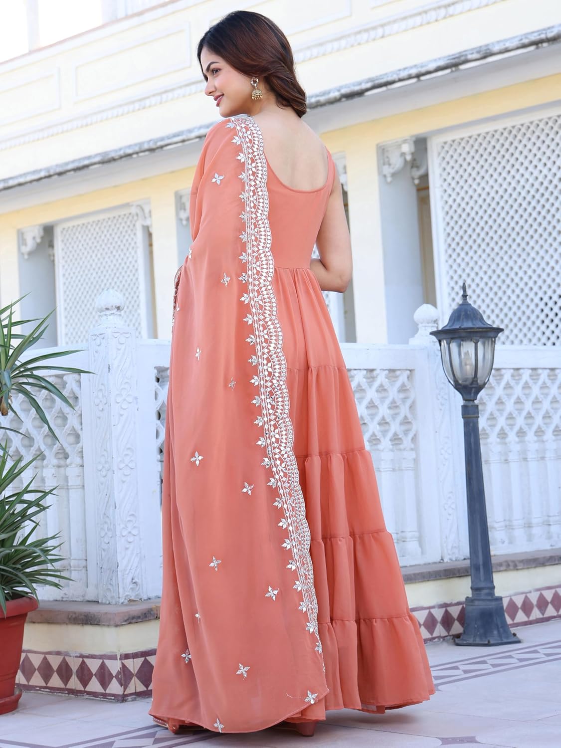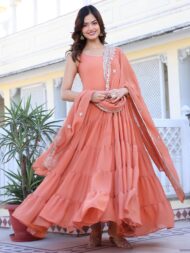 Such a beautiful and elegant dress. Looks so pretty also colour and fitting is just perfect. Dress material is also high quality. Worth every penny .