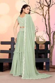 Be the first to review “Faux Georgette Omkar Textile’s Sea Green Color Readymade Lehenga Choli With Dupatta Set For Women For Party, Wedding, Festive, Free Size by VintaVool”
