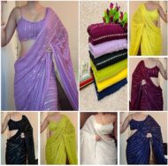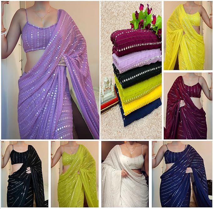 Flosive Women’s Thread Sequence Work Georgette Saree With Blouse by VintaVool