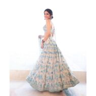 👗The lehenga is embellished with exquisite Sequence ans Thread work in floral patterns all over, which catches the eye from a distance. The matching choli features delicate straps and a low back for a graceful look.