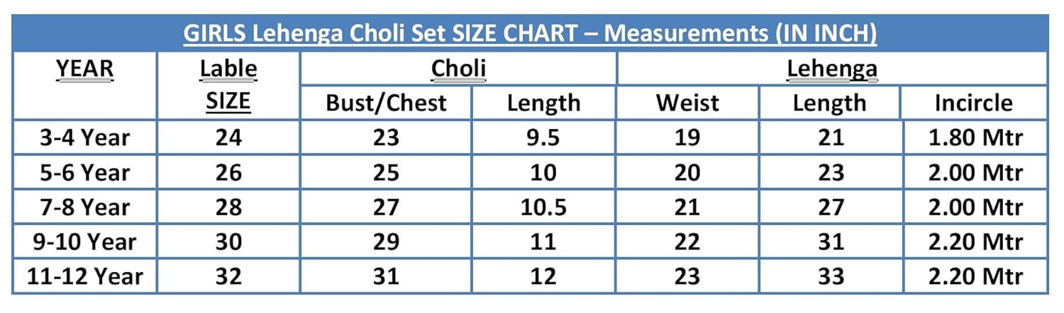 Generic Name : Girl’s Lehenga Choli Set