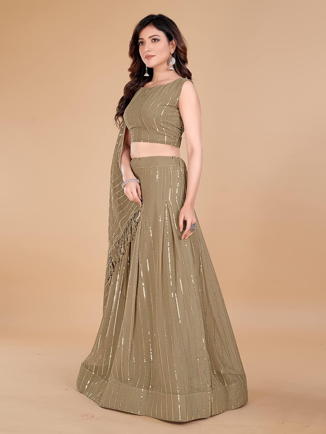 Explore the collection of beautifully designed Lehenga Choli from Granthva Fab on Amazon. Each piece is elegantly crafted and will surely add to your wardrobe. Pair this piece with heels or flats for a graceful look.