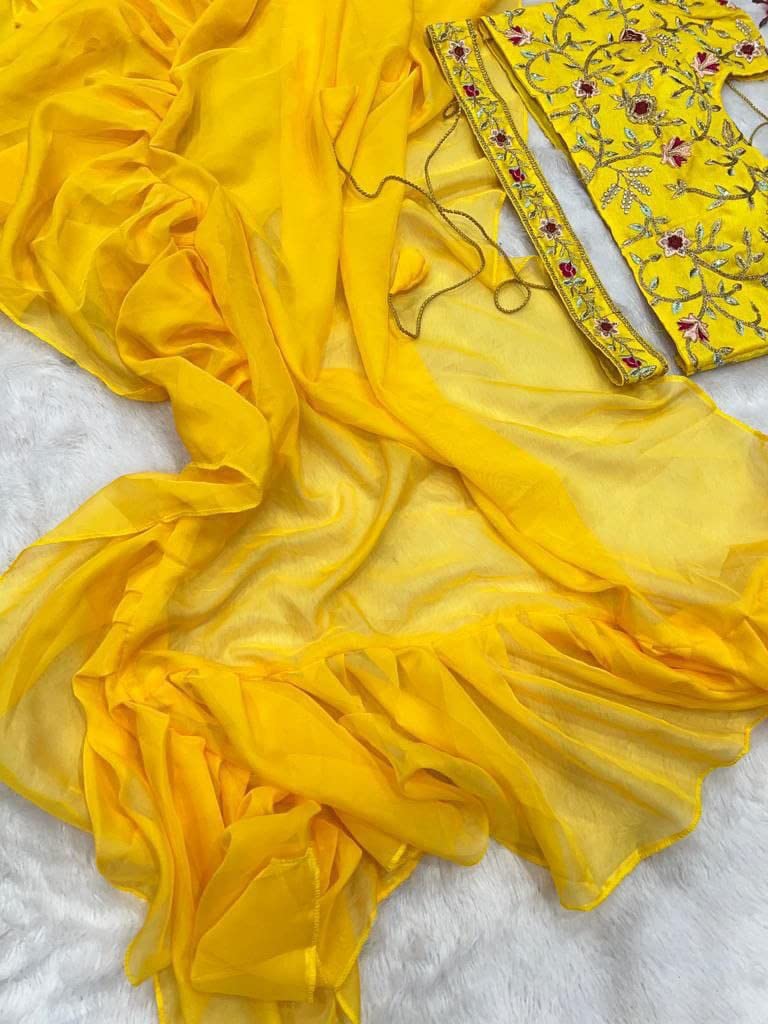 infabzon Ready To Wear Lehenga Saree & Belt Set For Women Bollywood Style Apple Organza Silk Fabric On Fully Stitched Embrodery Sequance Work by VintaVool