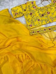 4 reviews for infabzon Ready To Wear Lehenga Saree & Belt Set For Women Bollywood Style Apple Organza Silk Fabric On Fully Stitched Embrodery Sequance Work by VintaVool