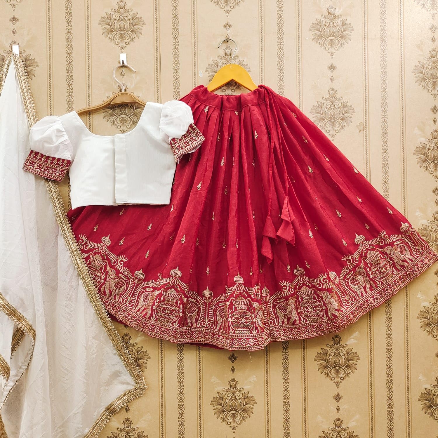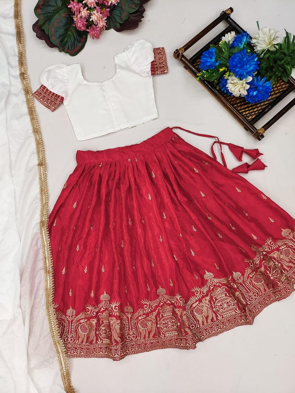 4 reviews for JAI CLOTHING Girls Embroidered Work Chinon Silk Full Stitched Lehenga Choli Set | Girls Ethnic Wear | Readymade Traditional Dress | Wedding lehenga Set by VintaVool