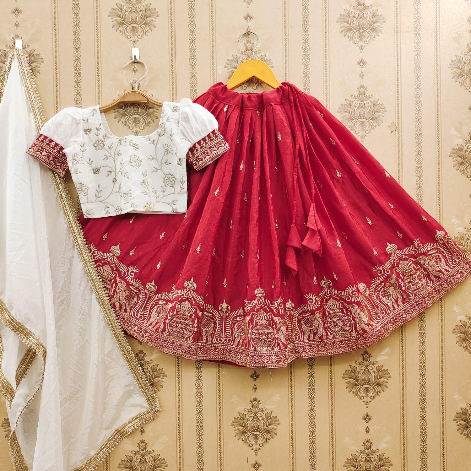 The video showcases the product in use.The video guides you through product setup.The video compares multiple products.The video shows the product being unpacked. JAI CLOTHING Thread Work Lehenga Set for Girls Merchant Video