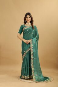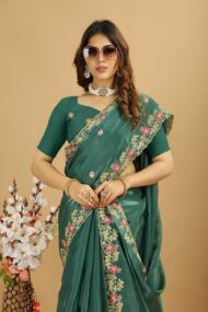 Jimmi choo rama sequence embroidery saree with pallu cut work by VintaVool