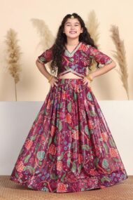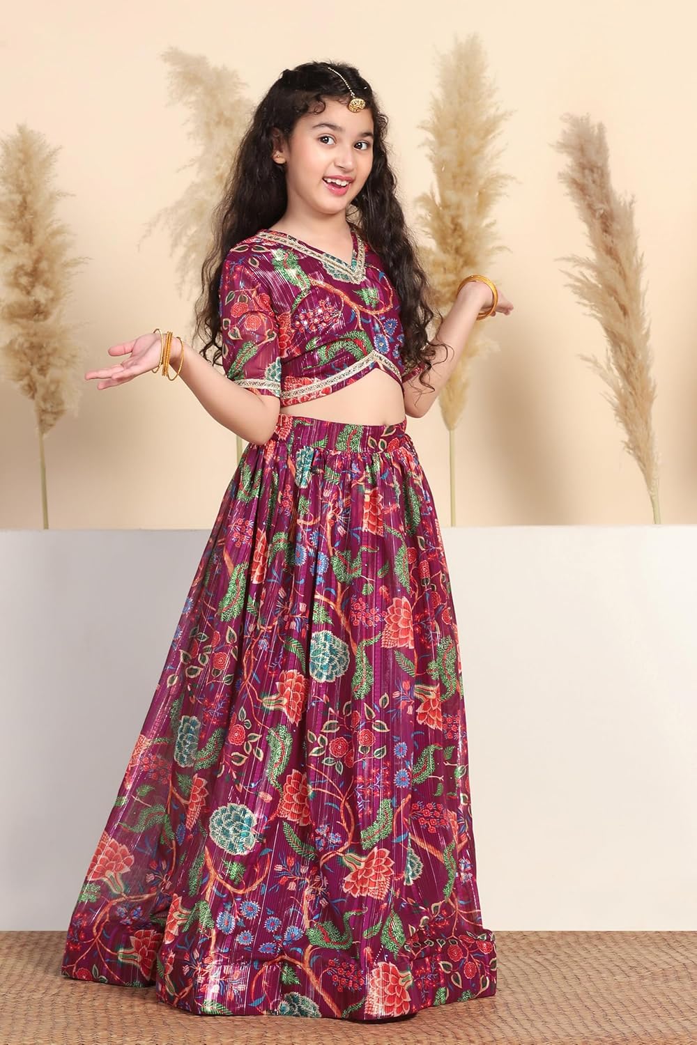Jwalin Girl’s Georgette Lehenga Choli|Lehenga Choli For Girls|Lehenga For Girls|Girl Lehenga|Printed Lehenga Choli For Girls by VintaVool