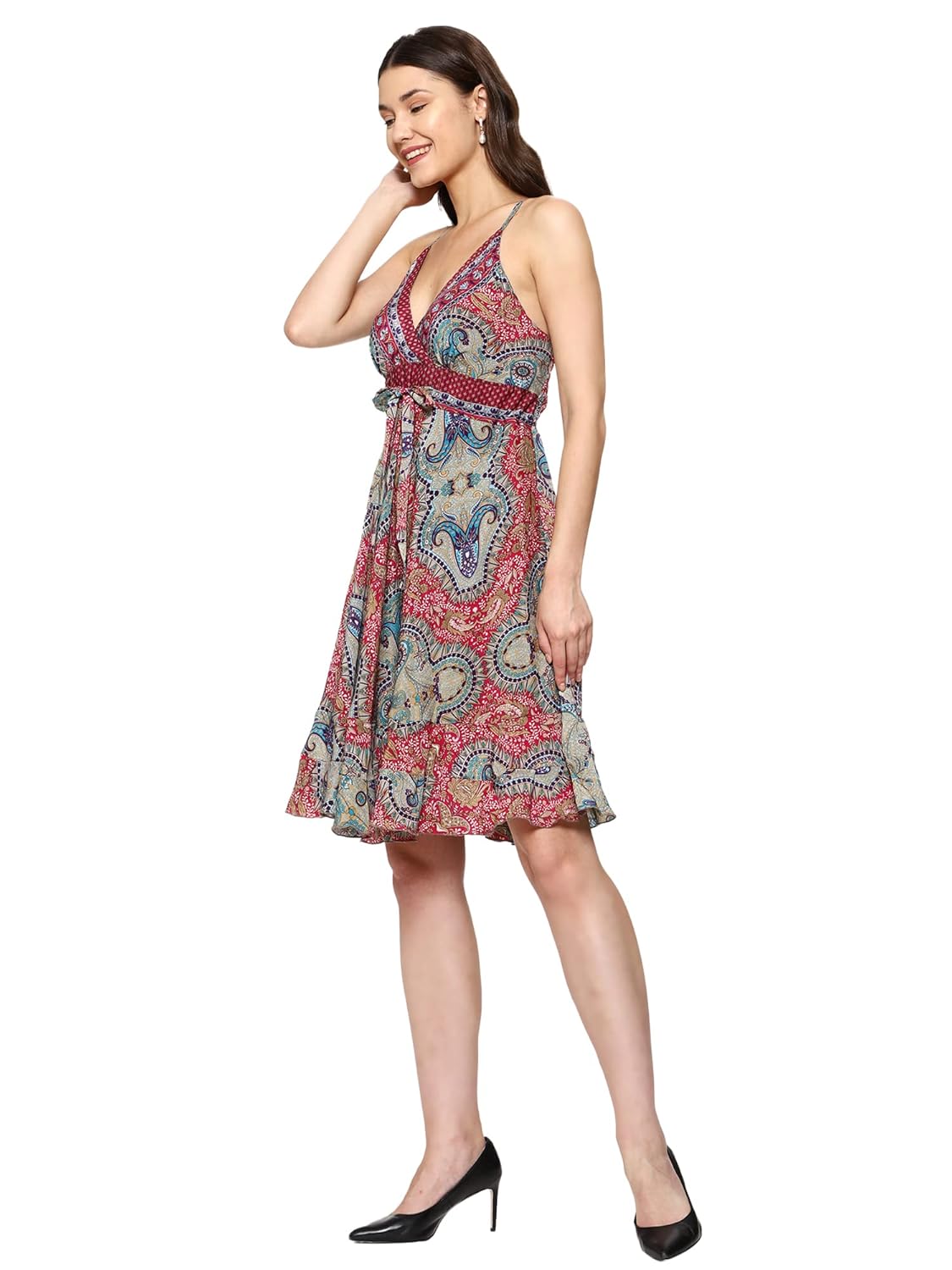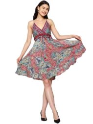 Kanha exports Women and Ladies, Girl,Boho Designer Dress for Women, Silk Short Dress, Boho Dress, Pattern with Tie Belt, Beach wear by VintaVool