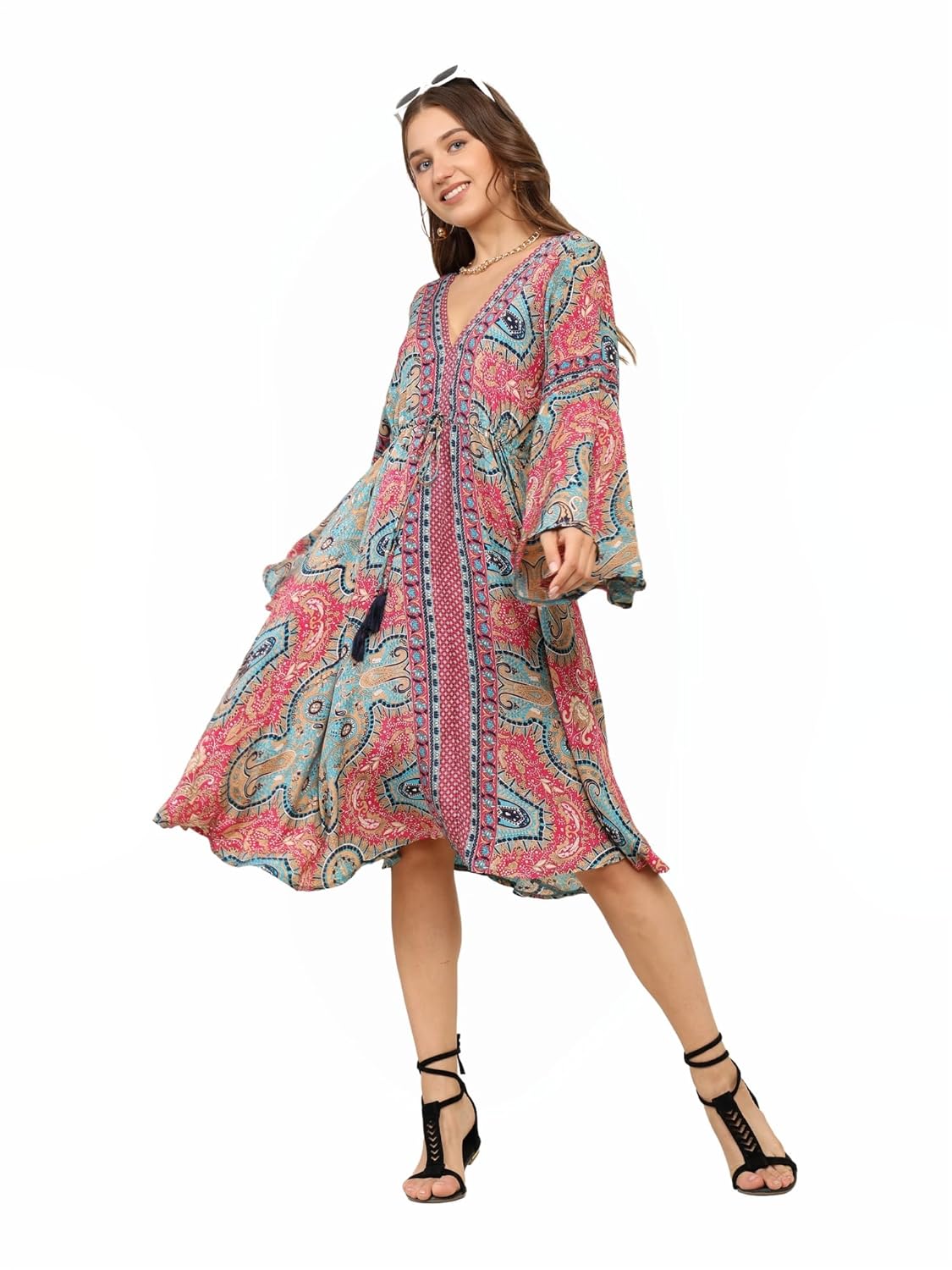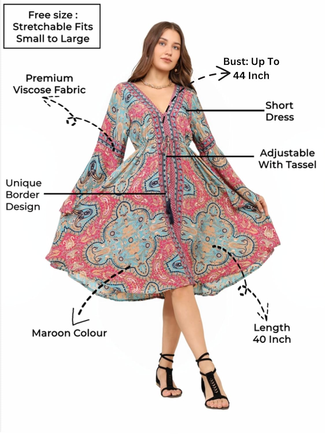 8 reviews for KE Kanha Exports Women Dress | Beach wear Dress for Women| Latest Stylish | Dresses for Woman | Summer Outfit | Unique Border Design Tassel Stretchable with Adjustable Drawstring fit and Flare by VintaVool