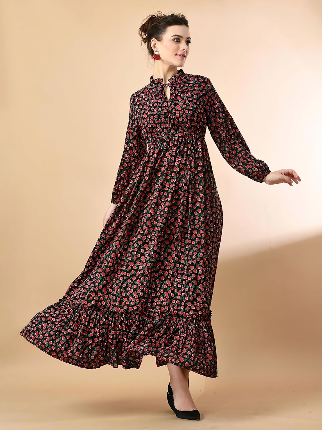 KZULLY | Floral Printed Maxi Dresses for Women | Long Sleeve Beautiful Floral Patterns | Stylish and Elegant Dress | Tie Neck by VintaVool