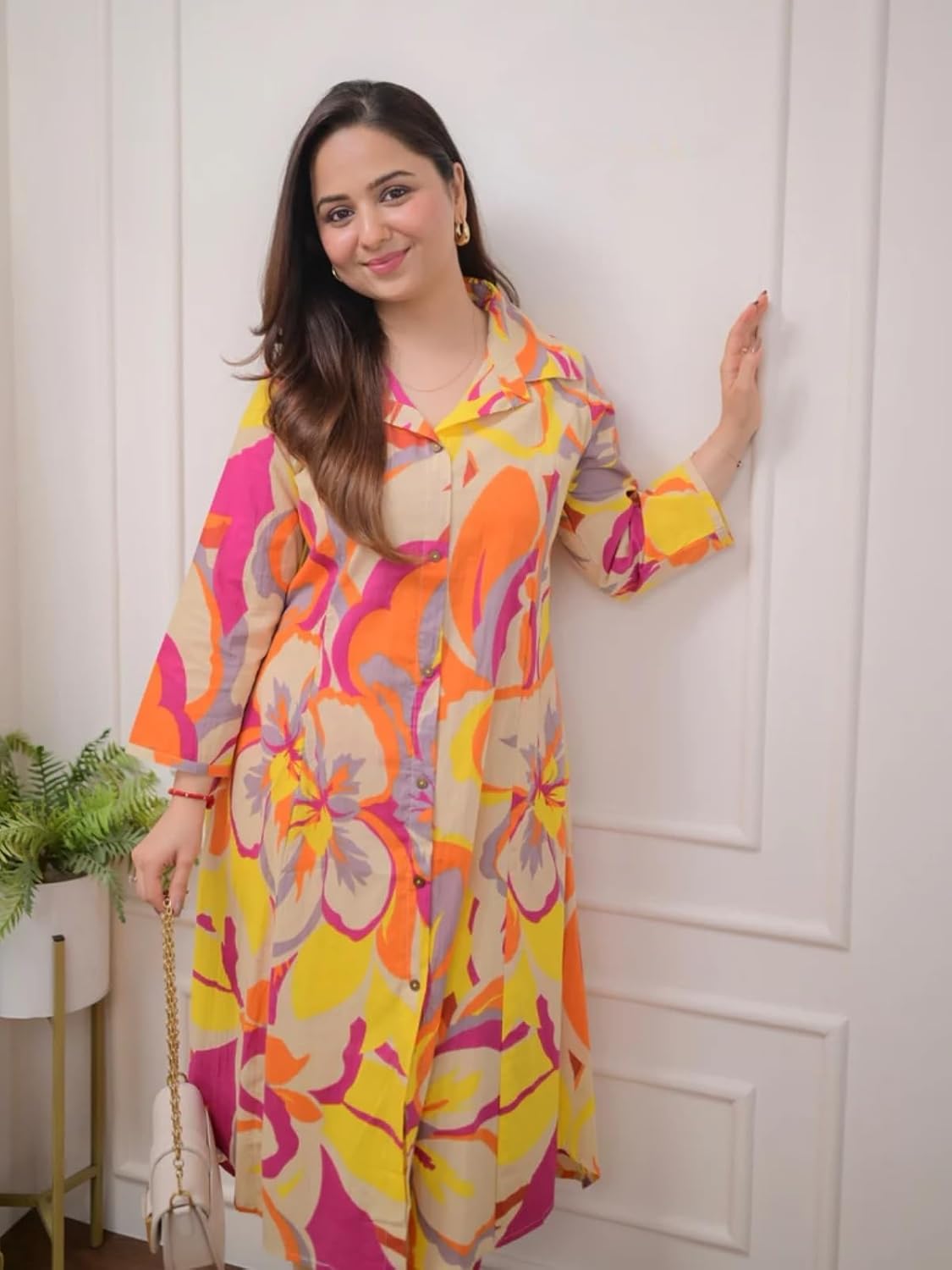 Customers find the kurti’s fabric thick and comfortable, with one noting its smooth cord set texture. Moreover, the dress features a traditional print that creates a lovely vibe, and customers appreciate its perfect fit and size. Additionally, the color receives positive feedback, with one customer highlighting the brown buttons as a good contrast. Customers consider the kurti excellent and worth its price, noting it keeps them cool throughout the day and is suitable for daily wear.