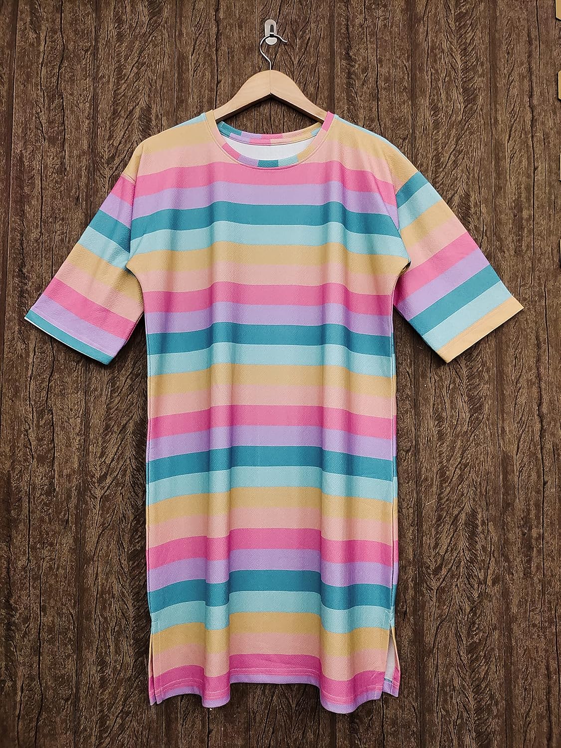 This long tshirt for women is very nice , fabric quality is just awesome,very comfortable and perfect fit on me ,also light weight, colour combination also nice ,also in affordable price..