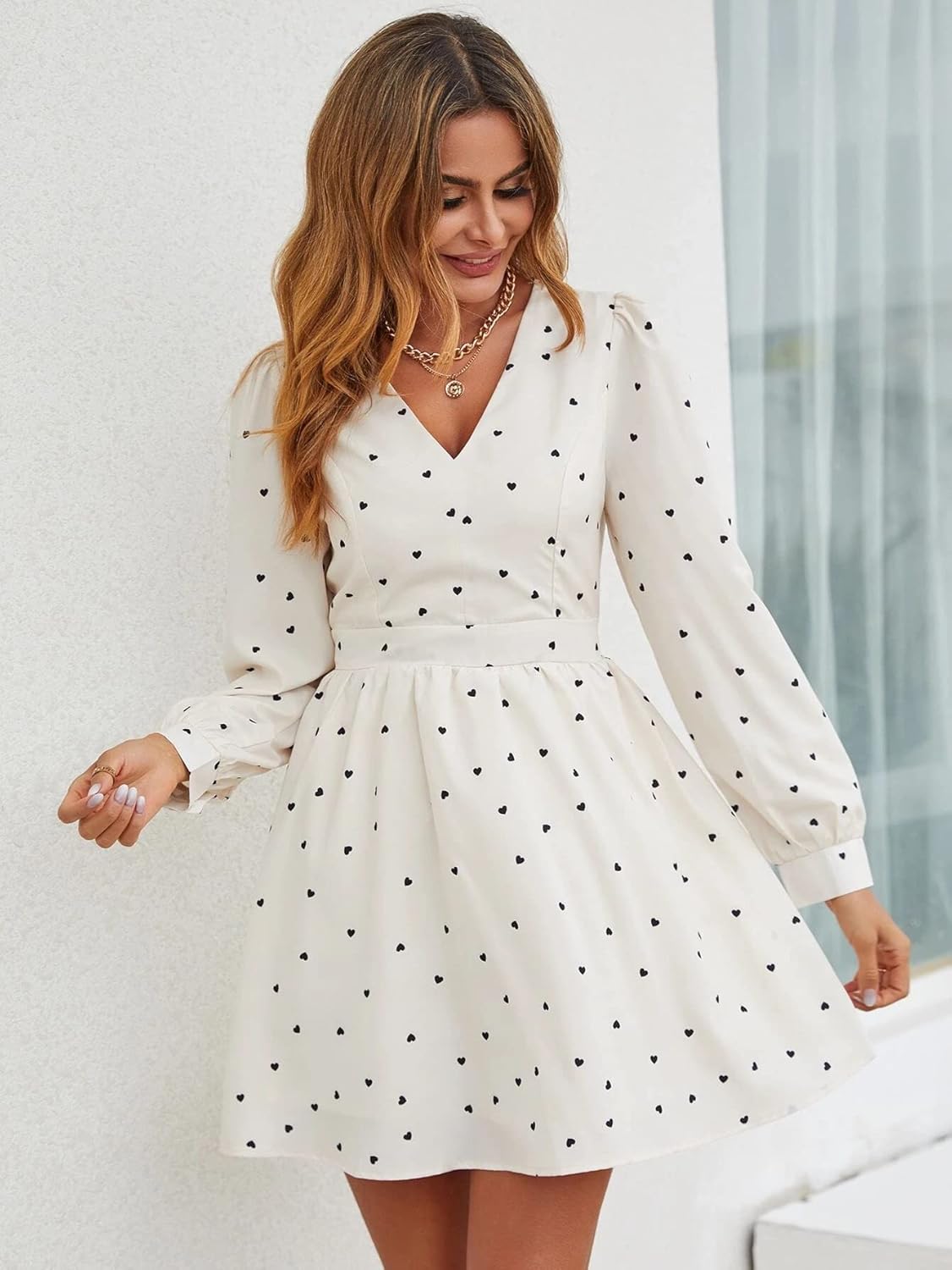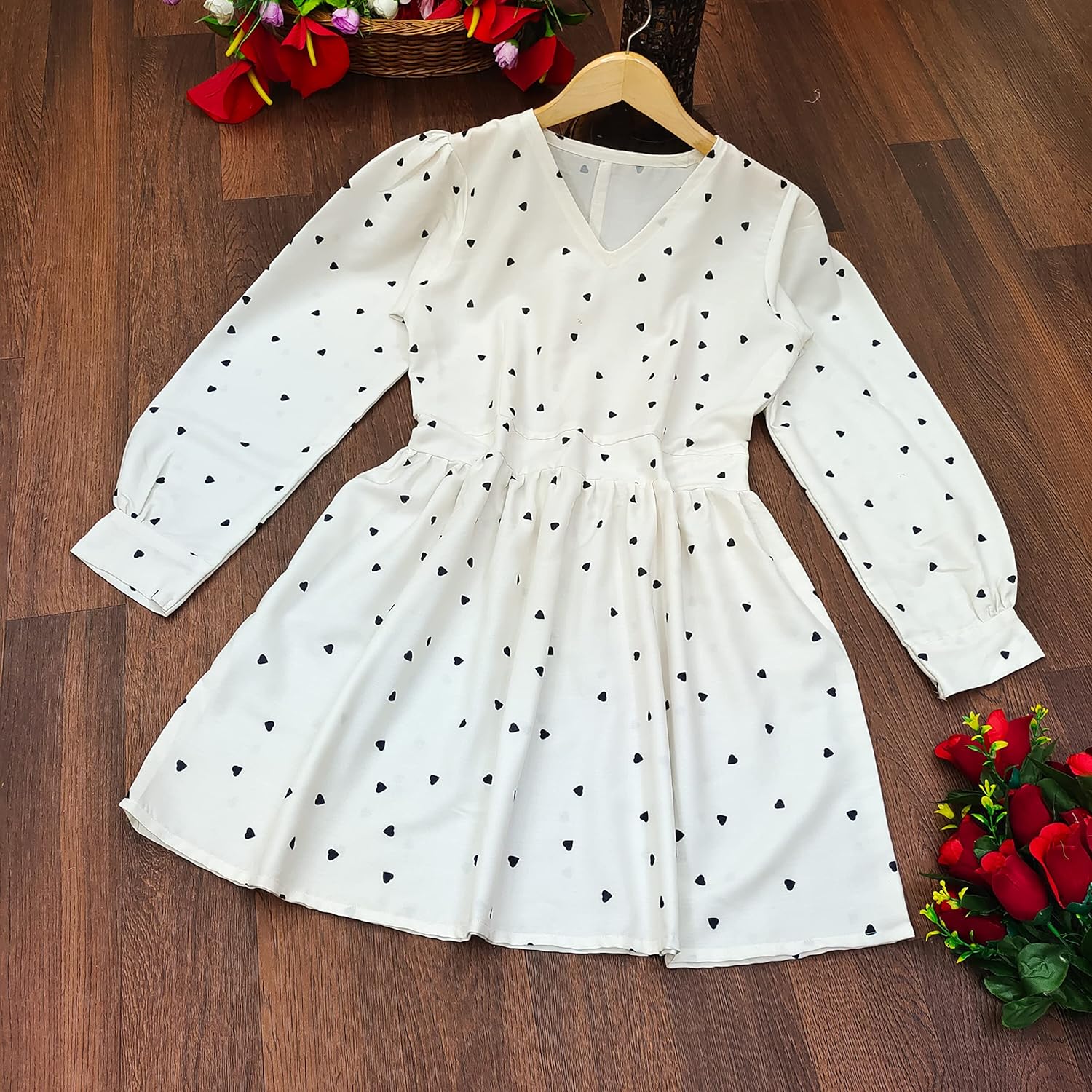 Very comfortable material, looks stylish, cute print of little hearts ð¤ Amazing dress at a reasonable price! It made my birthday more special ð¤©