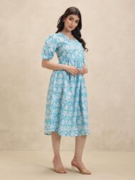 Stuff quality and size is perfect. Cute look when worn. Frock looks perfect in summers. Summery colour and very decent and can be worn everyday at office or work. Best in this budget