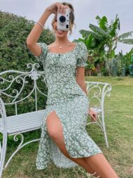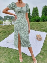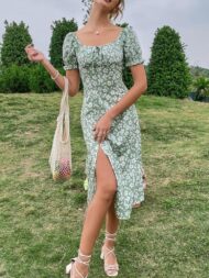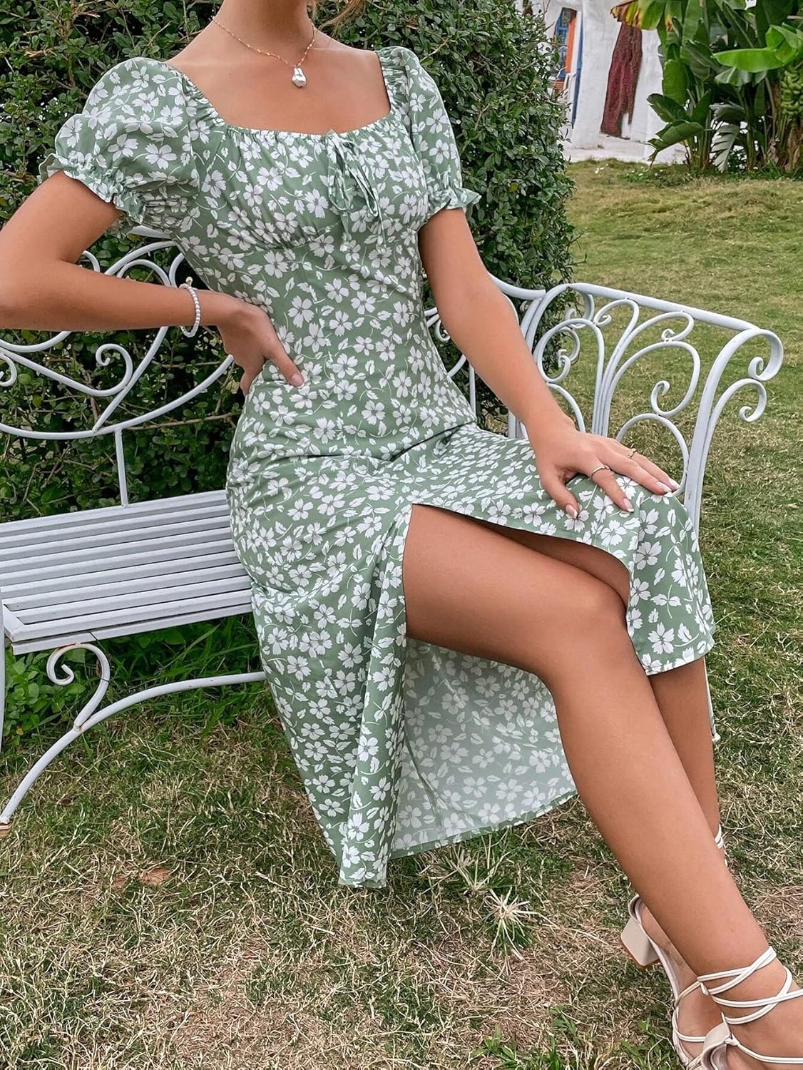 the length is actually short, ends just below the knee and not the calf so for tall people, make fair choices. the stitching is nice and the material isn’t too rich but soft on the skin and lightweight for a summer day. my concern is with the square neckline shape, it’s a little shabby. if the manufacturers read this review please look into it, because that’s what differentiates a poorly made dress despite its elegante-ness. all in all its so pretty and cottage core vibesssss