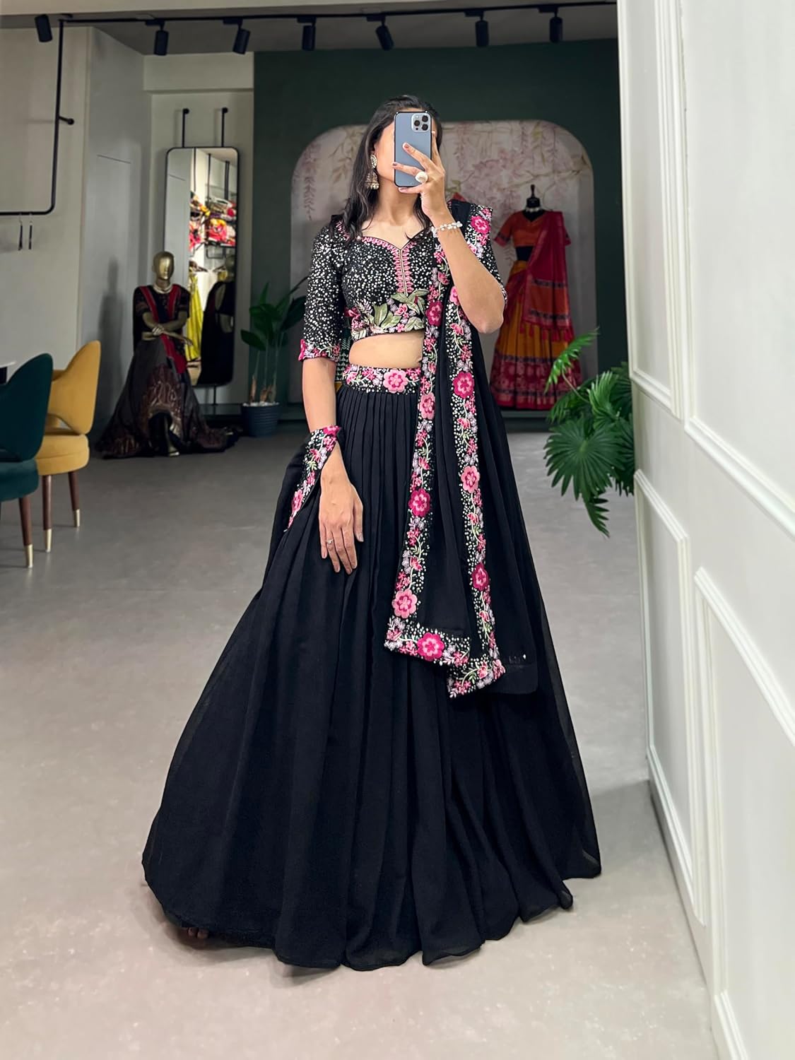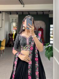 Be the first to review “LooknBook Art Women’s Sequins Thread Embroidery Work With Georgette Semi-Stitched Lehenga Choli, Black by VintaVool”