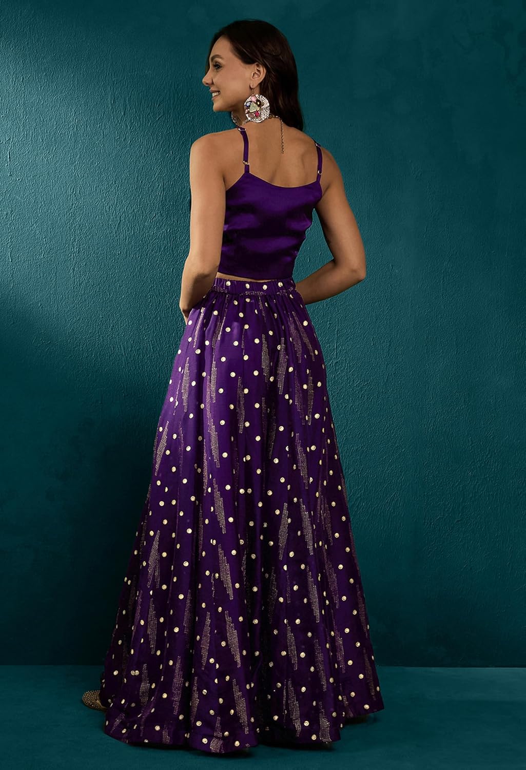 LYMI LABEL Fusion Set For Women’s – Purple Chiffon Top With Printed Lehenga And Zari Sequence Embroidered Shrug For Women, Traditional, Ethinc, Wedding, Fusion Wear by VintaVool