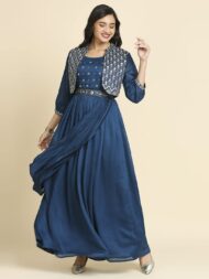 madhuram Women’s Long Gown for Solid Silk with Heavy Embroidery and Hand Work Belt and Jacket with Round Neck Gown(M-2424) by VintaVool