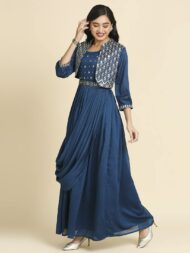 Presenting this Long Gowns from MADHURAM TEXTILES. These Fabricks Silk And Heavy Embroidery And hand Work And Drapping Attached Dupatta Print Gowns for women are Ideal for parties and festivals. Our Kurtis is made and stitched using high-grade fabrics and threads under the strict supervision of our experienced executives. We are offering our products at the most reasonable prices. Indo western dress is for women’s party wear you can wear it for office Party And College Farewell Parties and also casual. Its fine finish and latest designs for women are trendy and stylish. It is well suited for Party Wear And Eid as well as work wear. It is the perfect choice for any occasion. Check out the stylish and beautiful latest design in this simple and soft Log Maxi Gown-Solid Singale regular Kurti. And we have made a Long kurta according to your special summer this kurta This Gown has been designed keeping in mind the latest trends in casual fashion, when you wear this If so, you stand out.