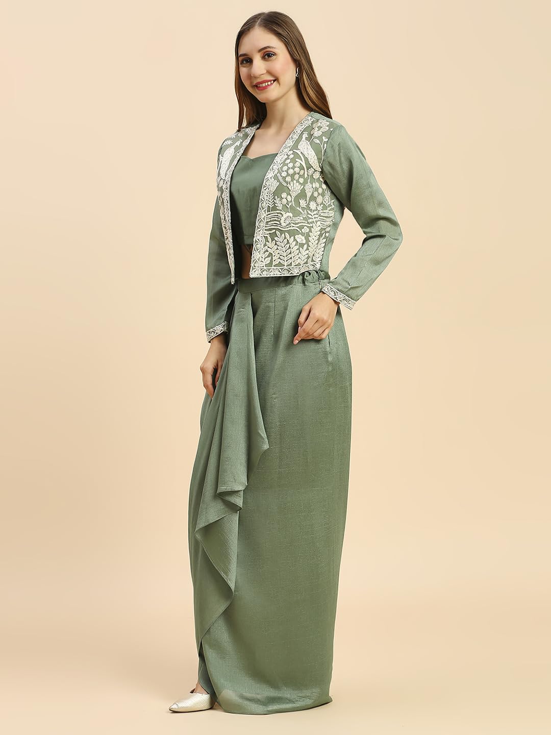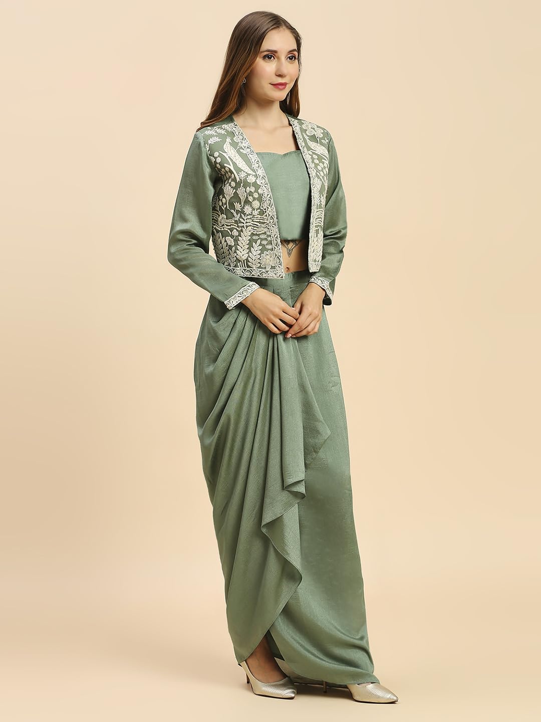 Presenting this Dhoti Style Skirt And Crop Top With Short Coti Style Set from MADHURAM TEXTILES. These fabrics Vichitra Silk And Heavy Embroidery Work Crush Print Skirt And Crop Top With Short Coti for women are Ideal for parties and festivals. Our Dhoti Style Skirt And Crop Top With Short Coti are made and stitched using high-Grade fabrics and threads under the strict supervision of our experienced executives. We are offering our products at the most reasonable prices. Indo western And Traditional dress is for women’s party wear you can wear it for office Party And College Farewell Parties and also casual. Its fine finish and latest designs for women are trendy and stylish. It is well suited for Party Wear And Eid as well as work wear. It is the perfect choice for any occasion. Check out the stylish and beautiful latest design in this simple and soft 3 Pic Set-Solid Singale regular. And we have made an according to your special summer this kurta This Gown has been designed keeping in mind the latest trends in casual fashion, when you wear this If so, you stand out.