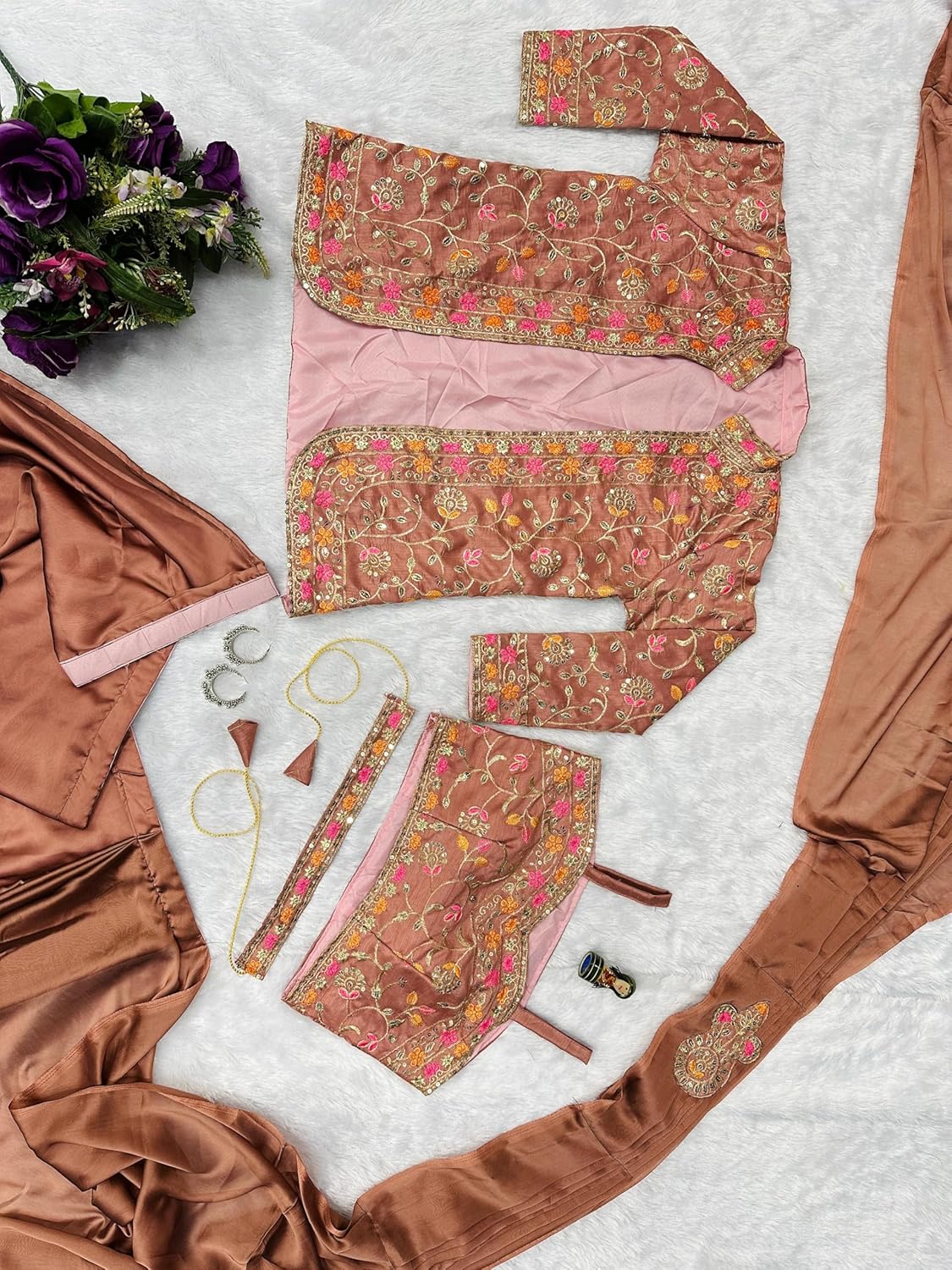 1 review for MARUTI FASHION HOUSE Lehenga Choli For Womens And Girls Ready To Wear Saree & Koti Set For Women Rangoli Silk Fabric On Embrodery Sequance Cording Work Bollywood by VintaVool